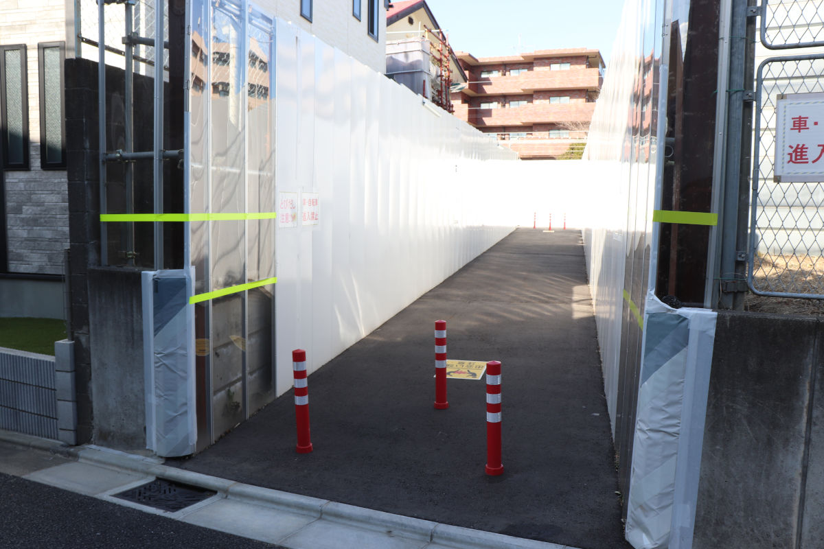 上北沢変電所の西側に整備された暫定通路は、このくらいの幅です。