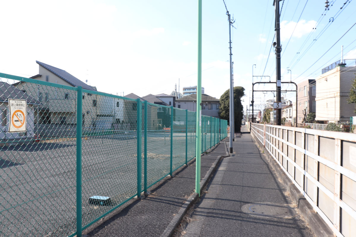 桜上水の電留線南側の区間では、連続して用地の取得が進んでいて、施工ヤードとして活用されています。