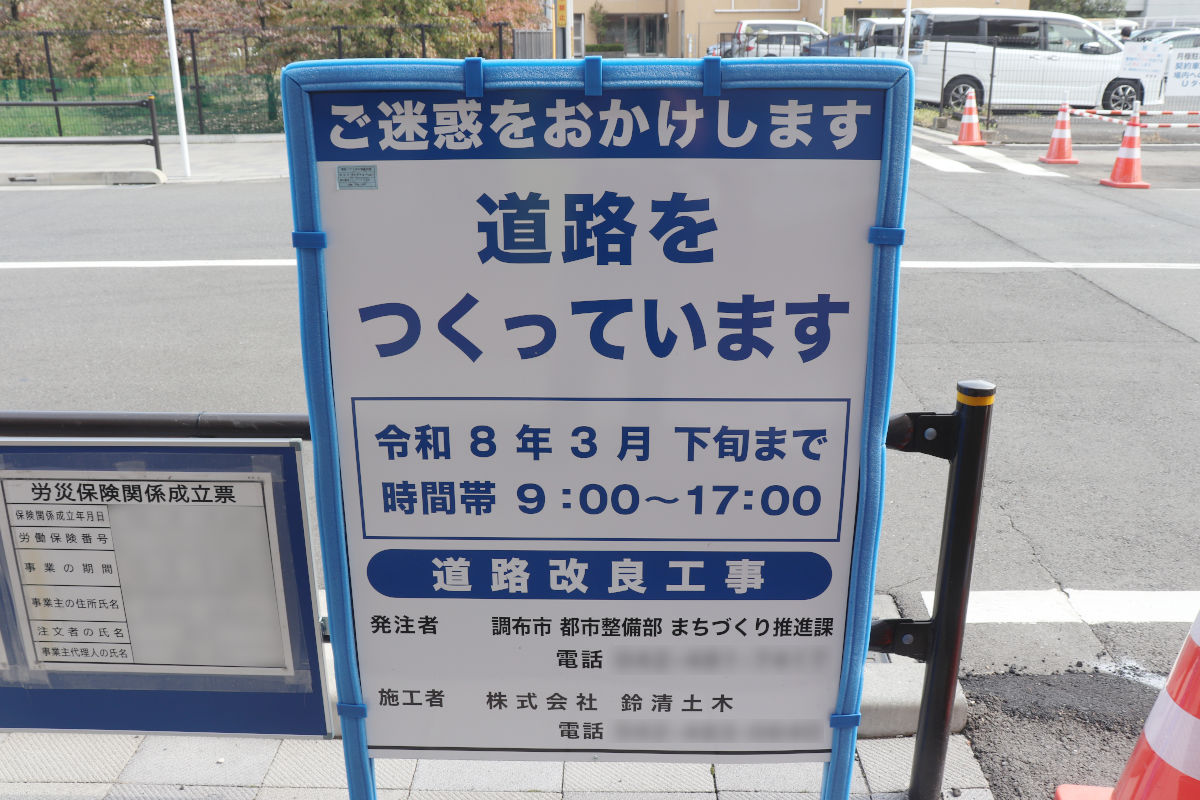 現在行われている工事は「令7調3・4・21号線道路築造工事」で、2026年3月下旬までの予定で、株式会社鈴清土木が施工しています。
