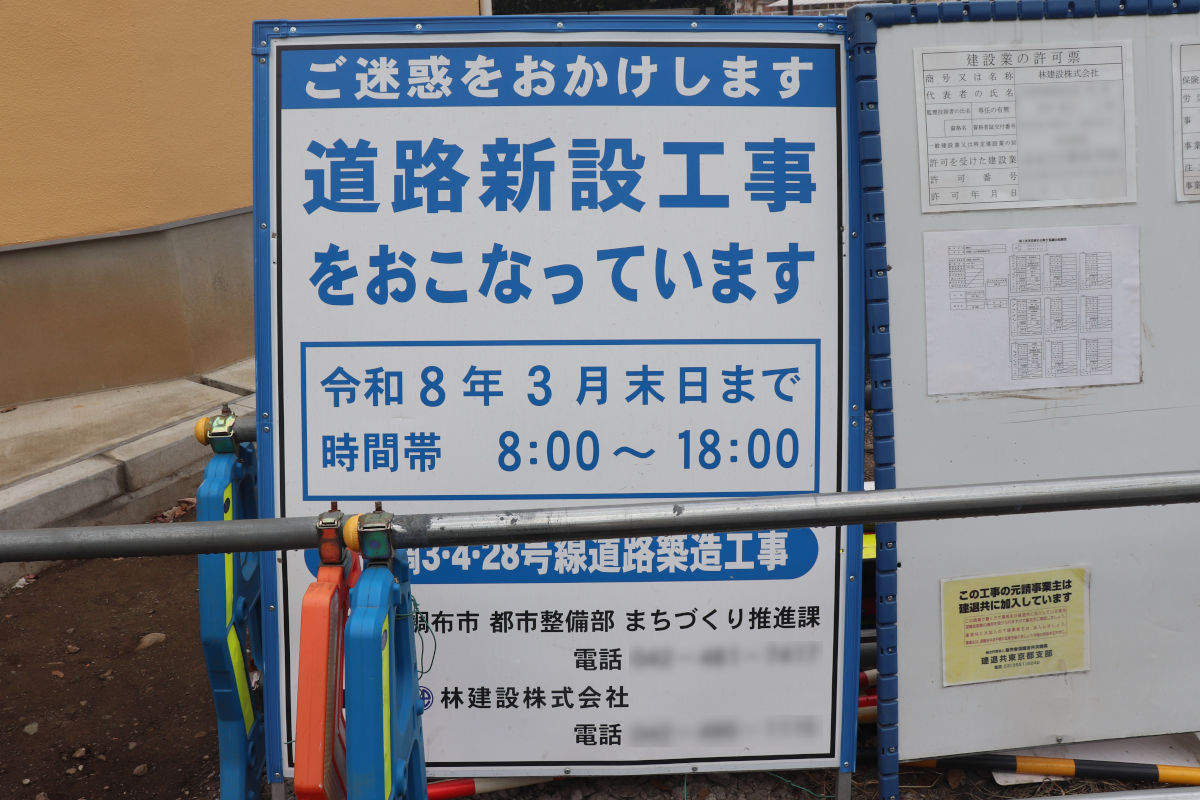 工事件名は「令7調布区画道路12号ほか1路線道路整備工事」で、 深大建設興業株式会社が施工する予定です。