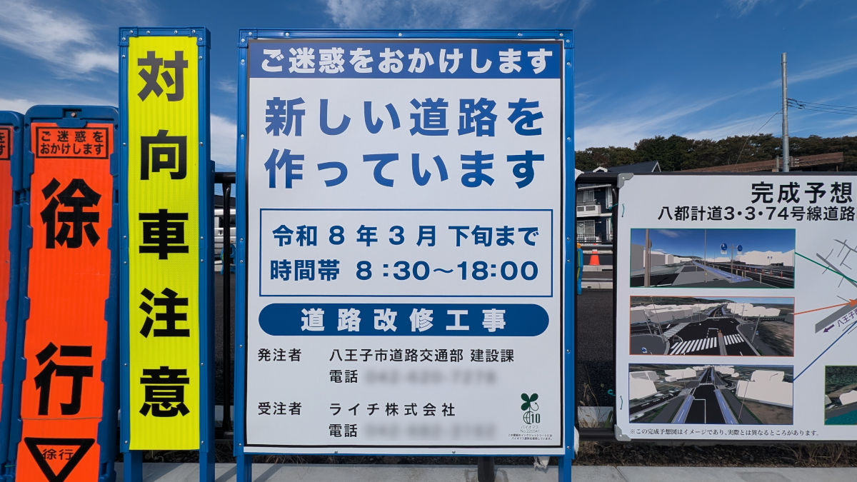 1件目の工事は「八都計道3・3・74号線道路改修その5工事」で、2025年3月下旬までの予定で、ライチ株式が施工しています。