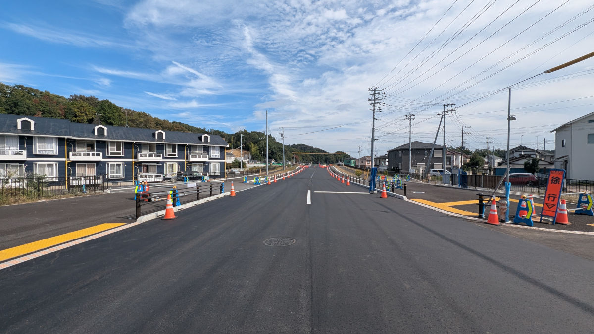 土地区画整理事業の整備工事は大詰めを迎えていて、既に宅地販売が始まっていることから、この区間を先行して開通するのではないかと思われます。