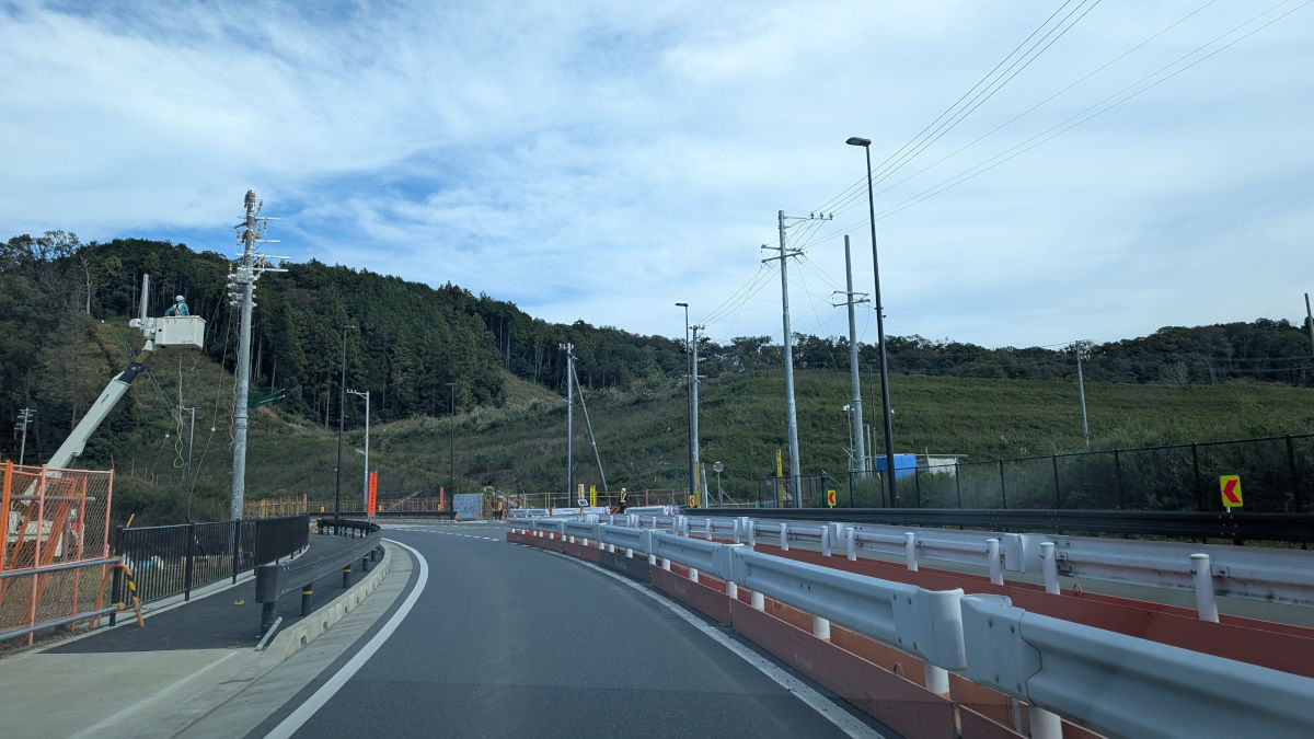 山入川を横断する部分は、これまでの工事で概ね道路形態まで完成しています。植栽や道路照明などは未施工です。