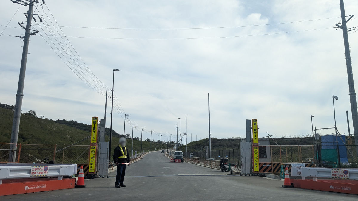 現在は沿道施設へ出入りする車両等に限り通行ができる状態です。