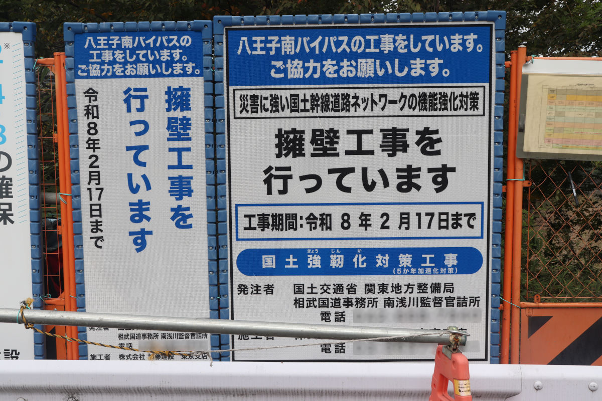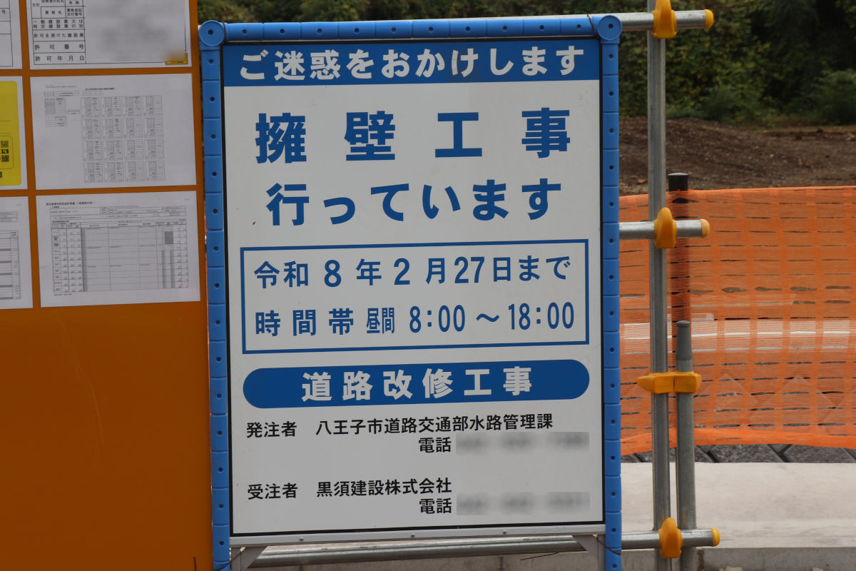 2件目は、「R6国道20号八王子南BP館地区擁壁設置その2工事」で、2026年2月17日までの予定で、株式会社加藤建設が施工しています。