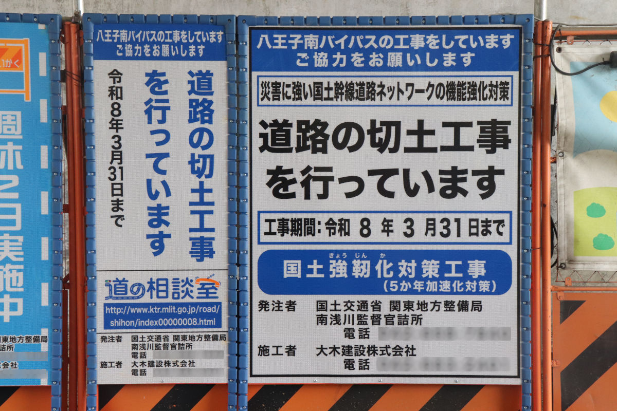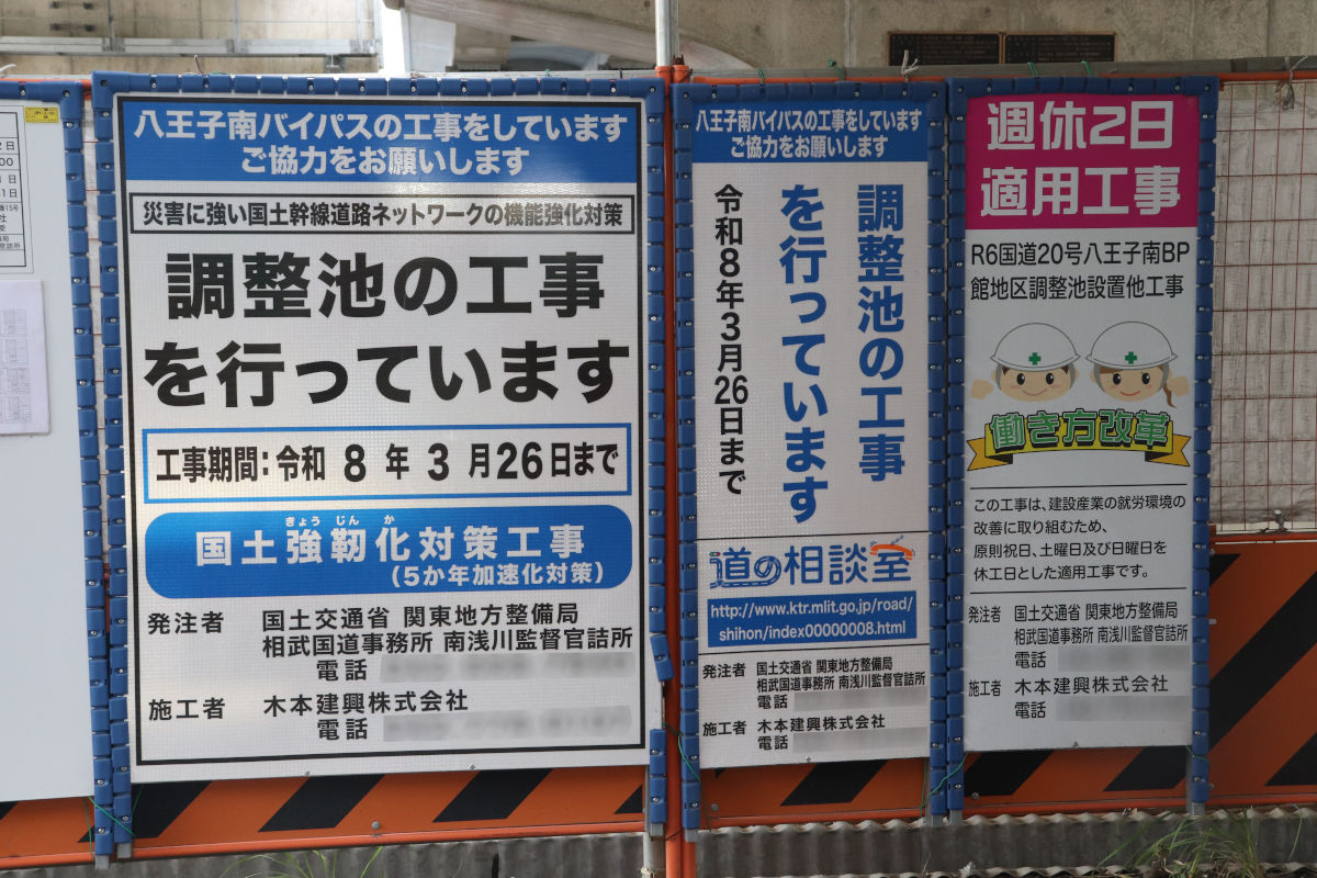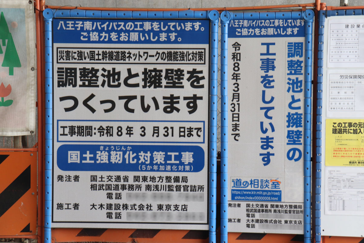 「R6国道20号八王子南BP改良他その2工事」は、2026年3月31日までの予定で、大木建設株式会社が施工しています。