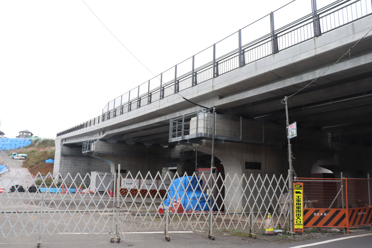 この跨道橋は、バイパス工事前に存在した道路を復元する目的で架けられているものです。