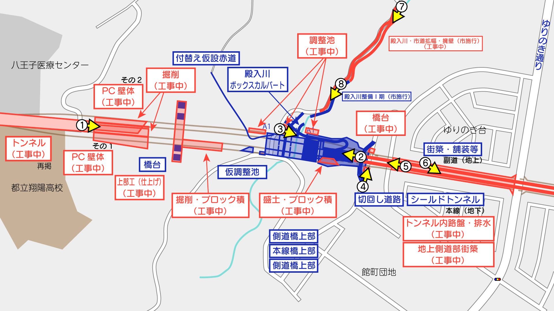 このほか、殿入川と交差する付近では、いくつかの工事が施工中です。