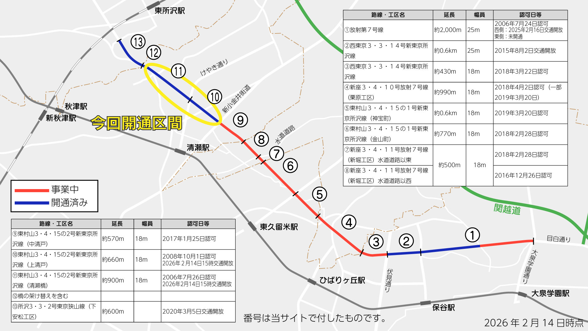 清瀬橋区間・上清戸区間を合わせて、2026年2月14日15時に交通開放されます。
