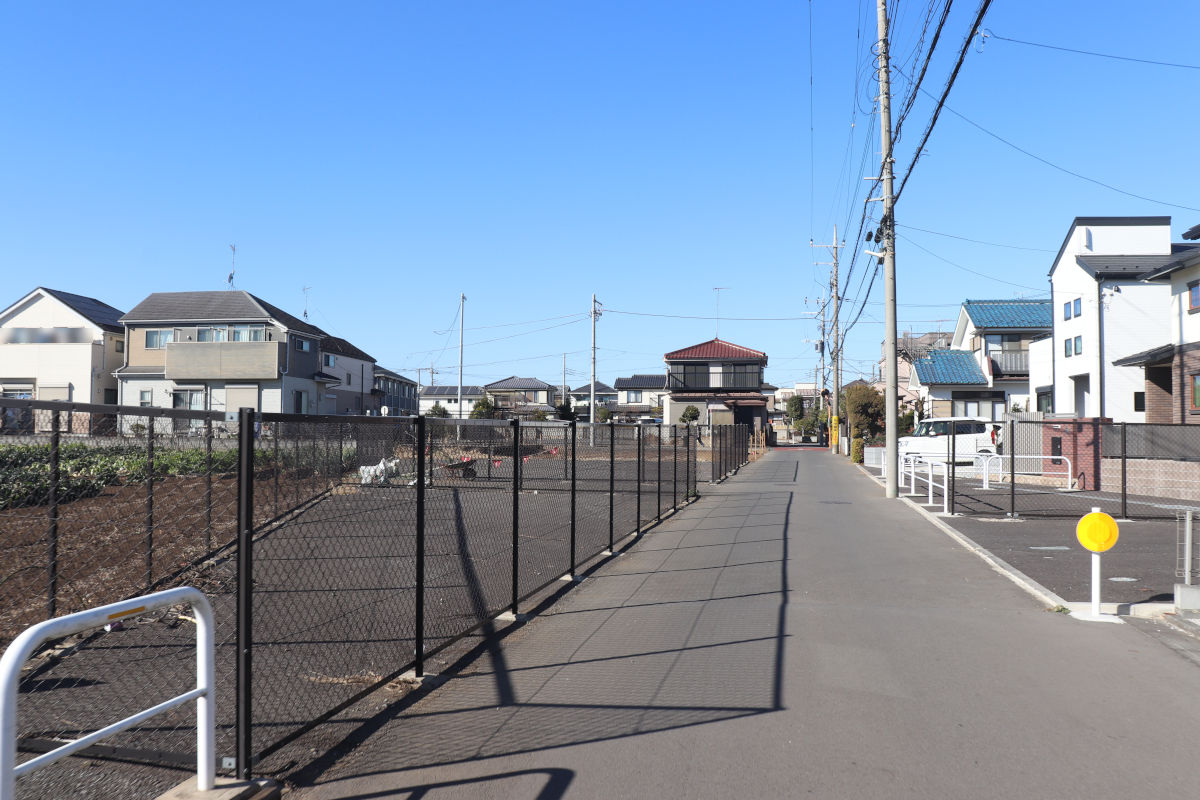 東京都清瀬市と埼玉県新座市の境から事業区間です。ちょうど写真のネットフェンスがある部分が都県境です。