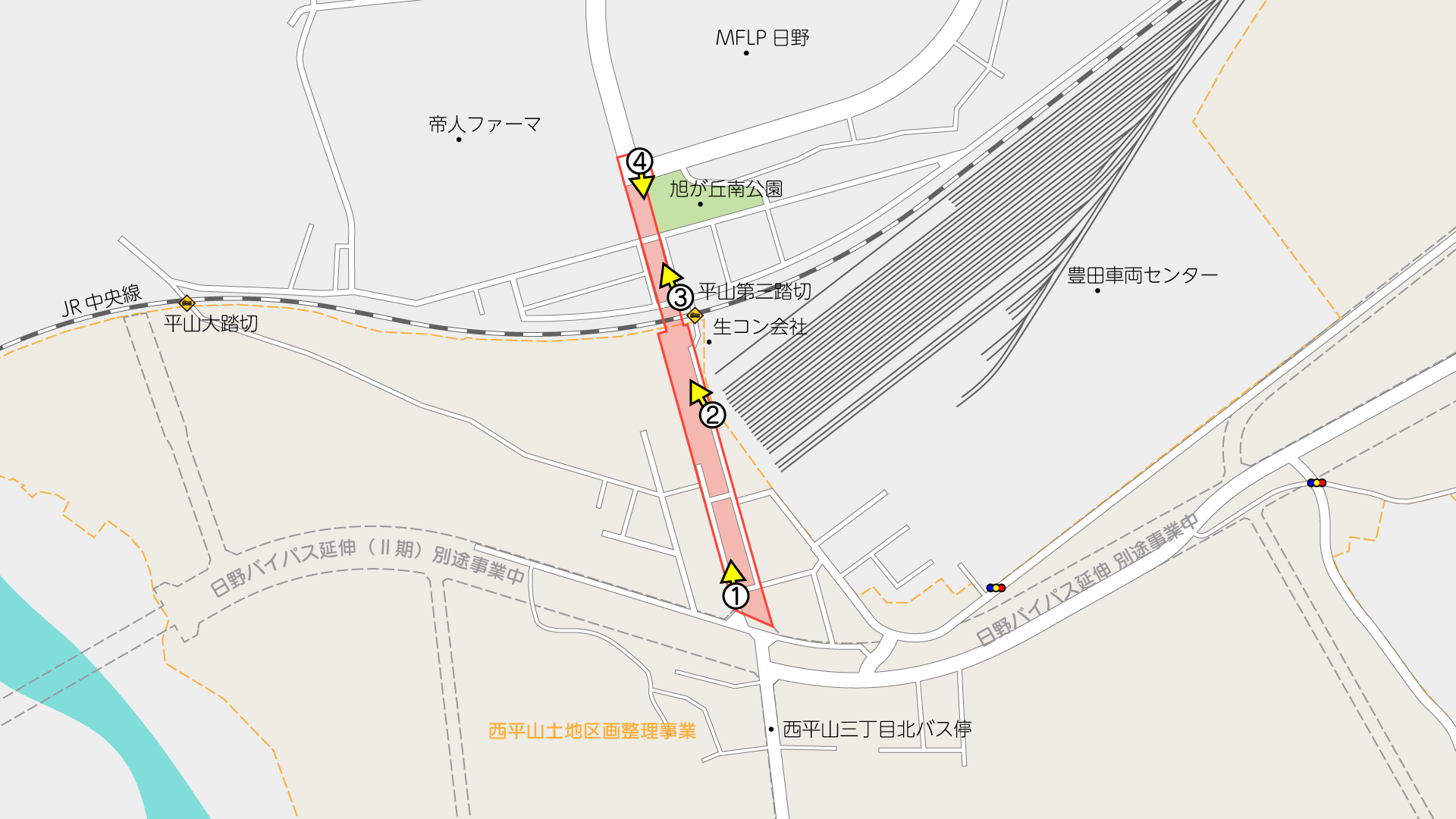 この付近一帯では、日野市施行の西平山土地区画整理事業が行われており、同事業で既に用地が確保されています。