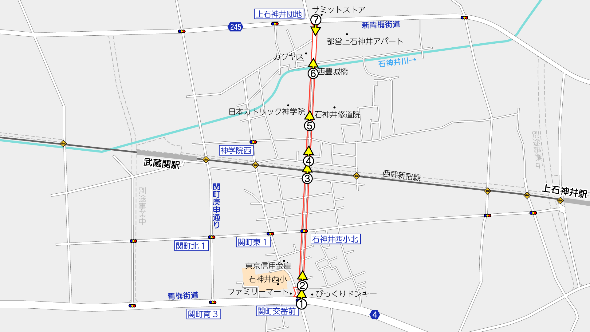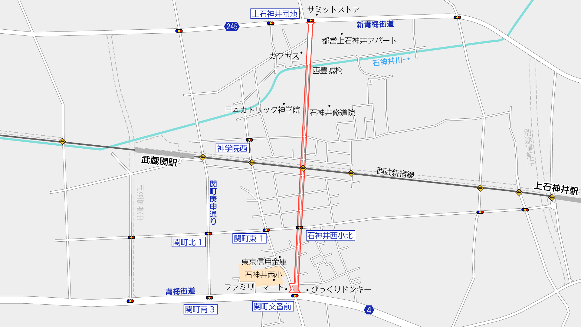 青梅街道の関町交番前交差点から北側が事業区間です。