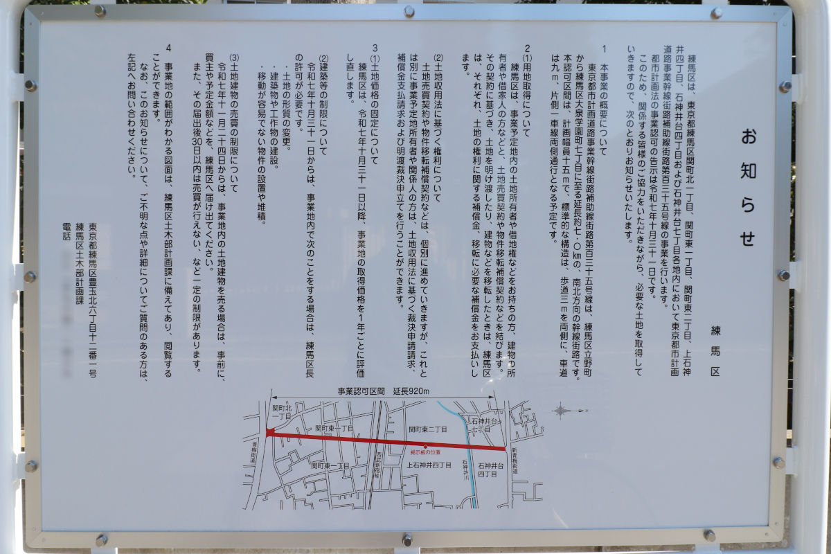 施行者は練馬区、延長は920mで、幅員15mの道路となる計画です。