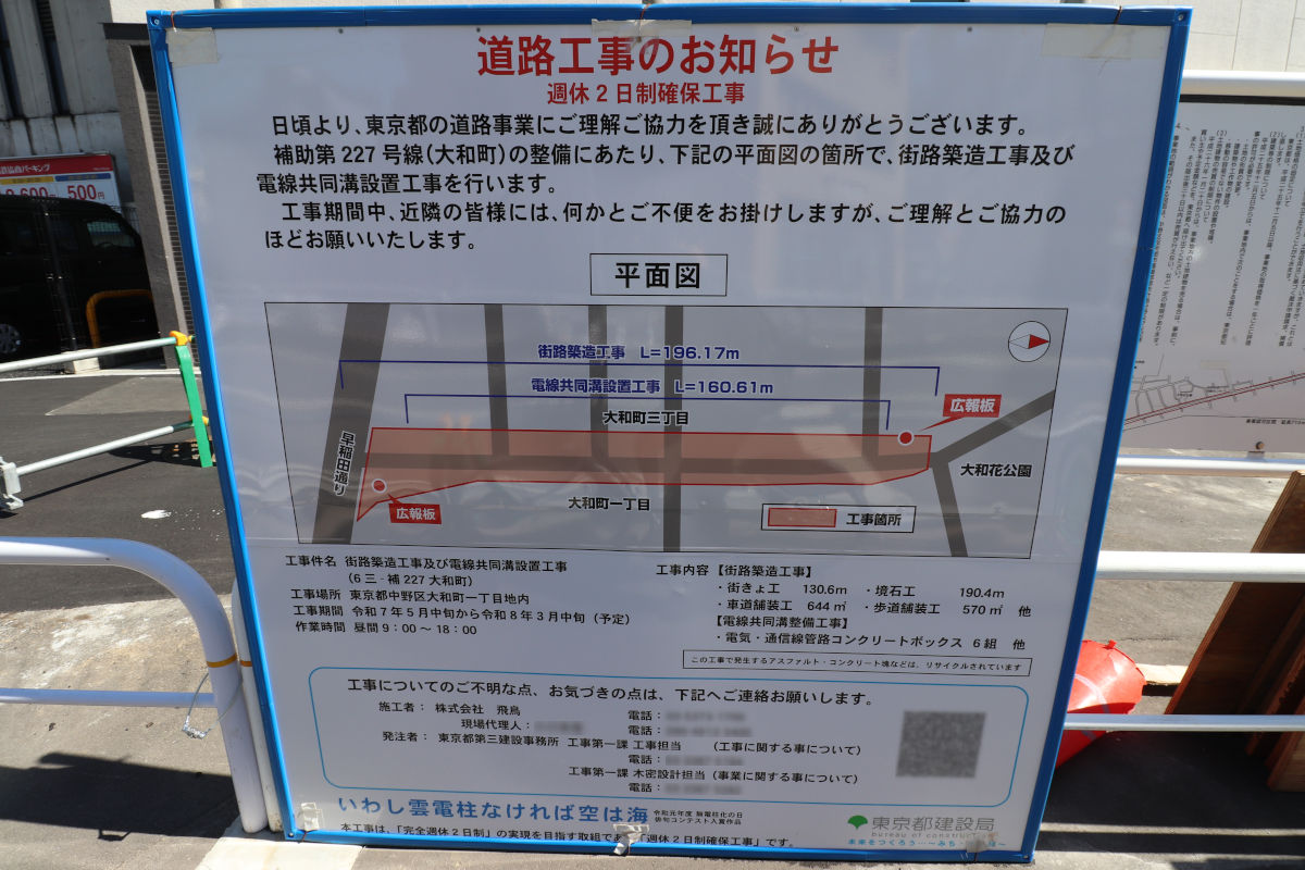 中野区で事業が行われている補助第227号線(大和町)の進捗状況を見て来ました。