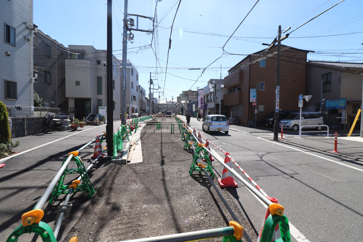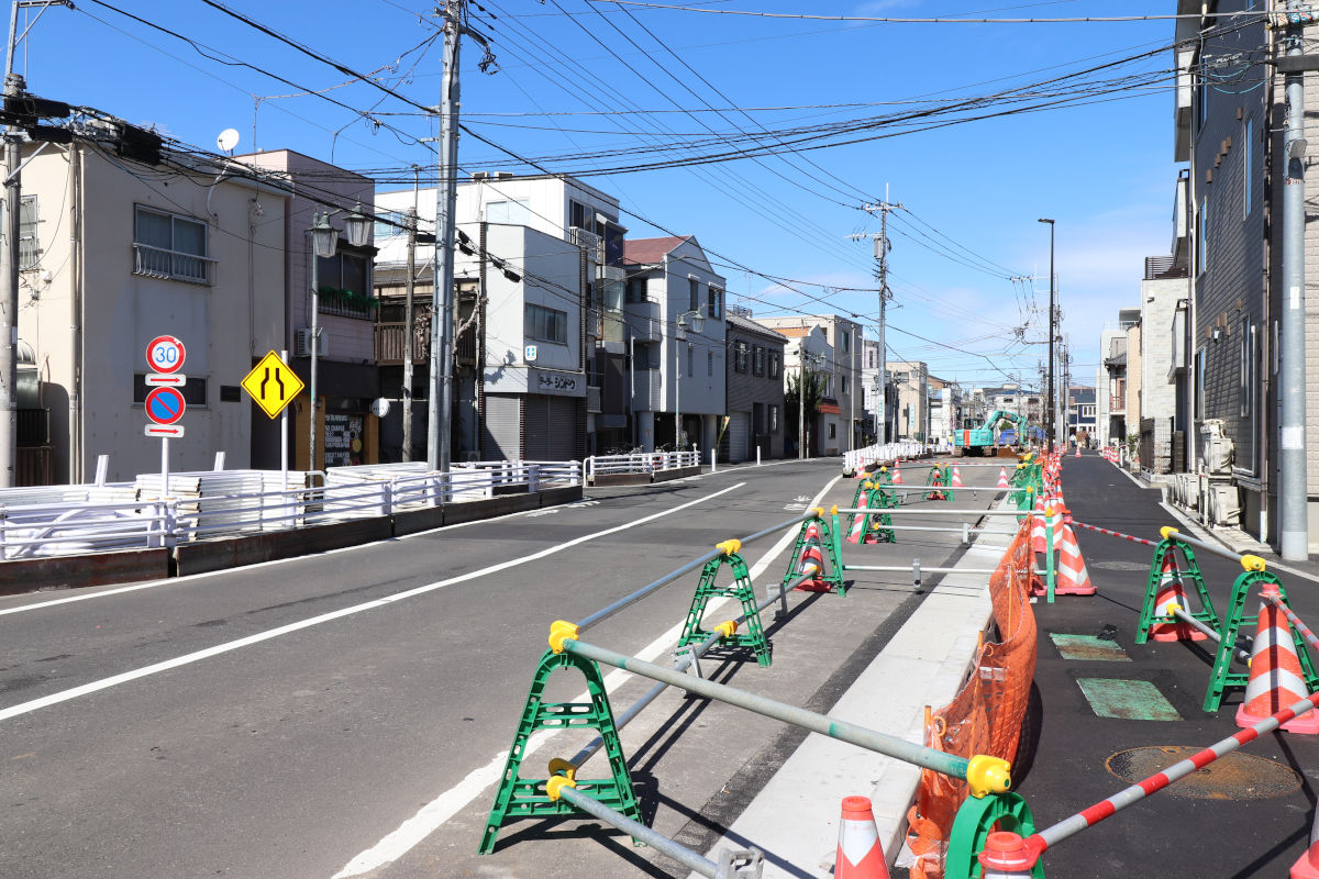 この道路は、延焼遮断帯や緊急車両の通行路確保などを目的に、特定整備路線として整備が行われています。