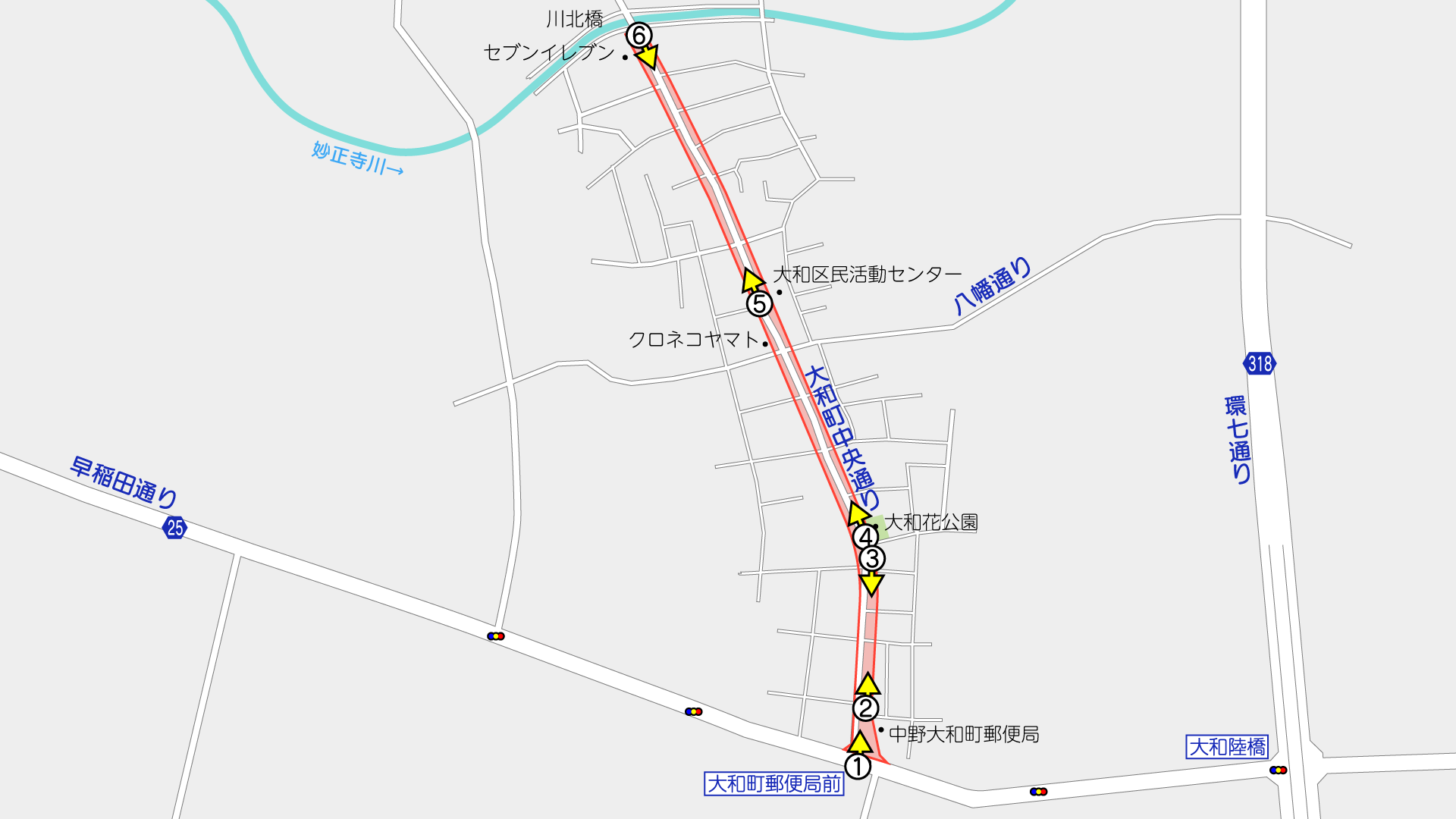 ②中野大和町郵便局の前(地図