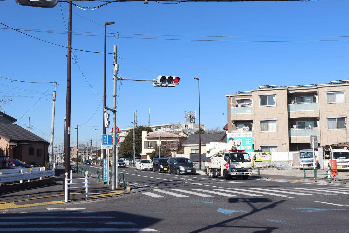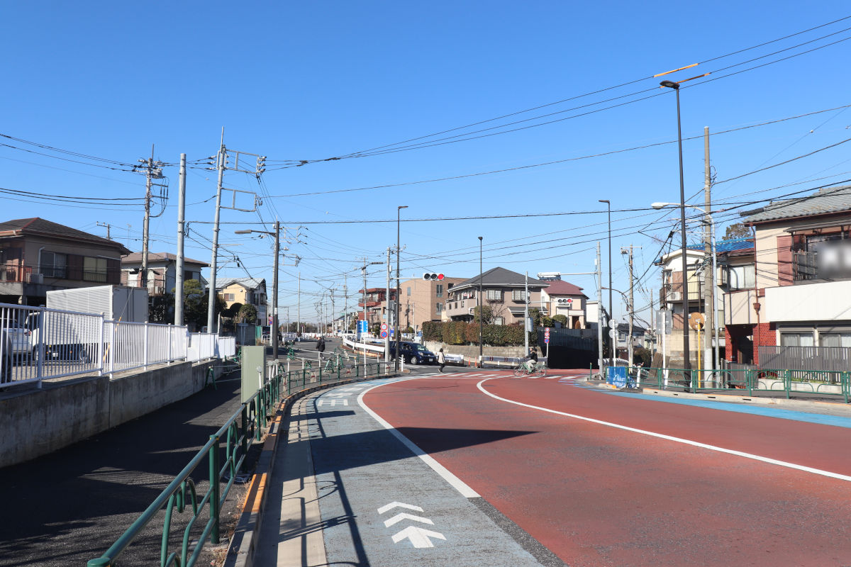 都道108号東京朝霞線が別荘橋方面に分岐するこの部分までが、現在の開通済み区間です。