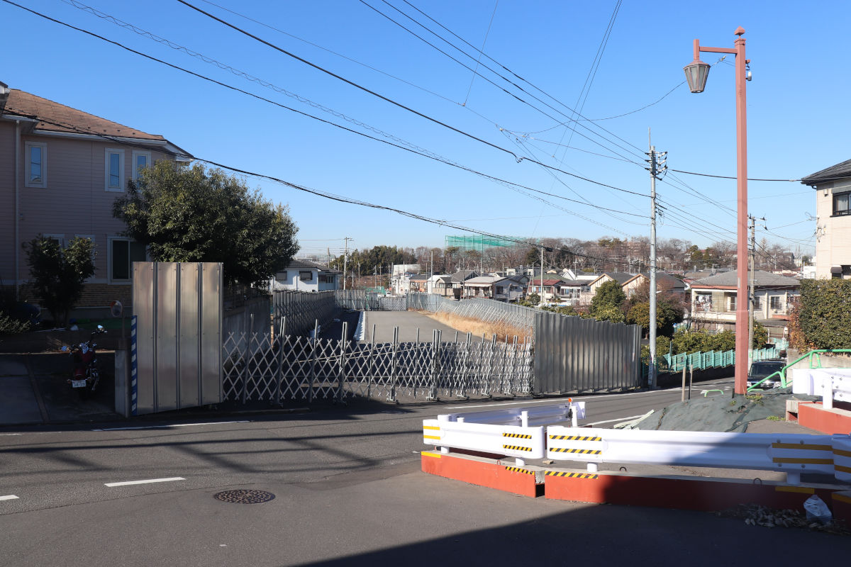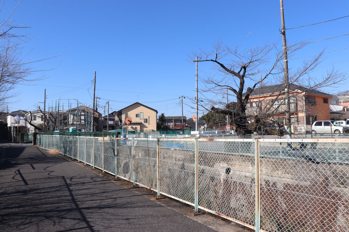 この先は白子川まで大部分が用地取得されていて、工事用車両が通行できるような形で、囲いで囲われています。