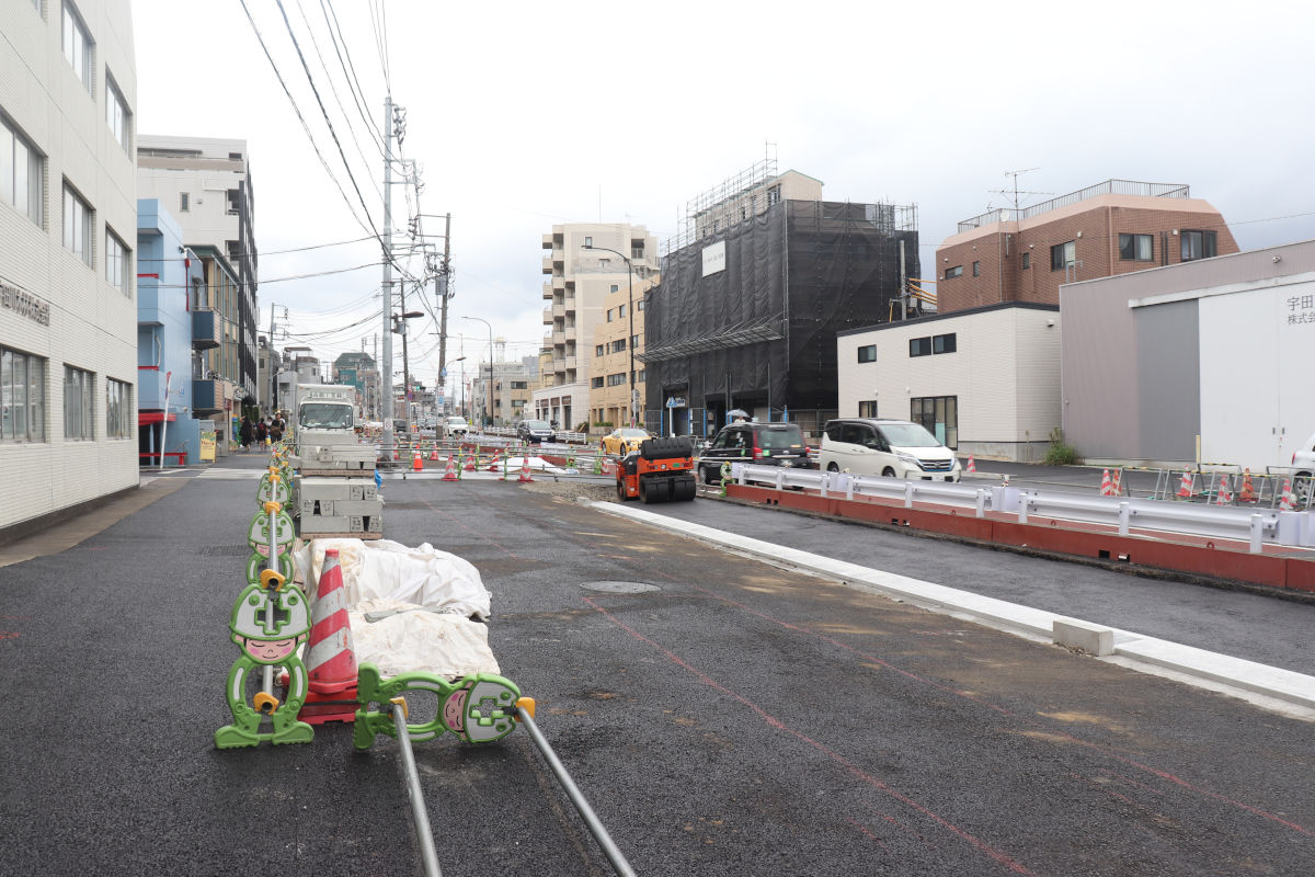 現在は、記事冒頭の区間で街路築造工事が進められています。