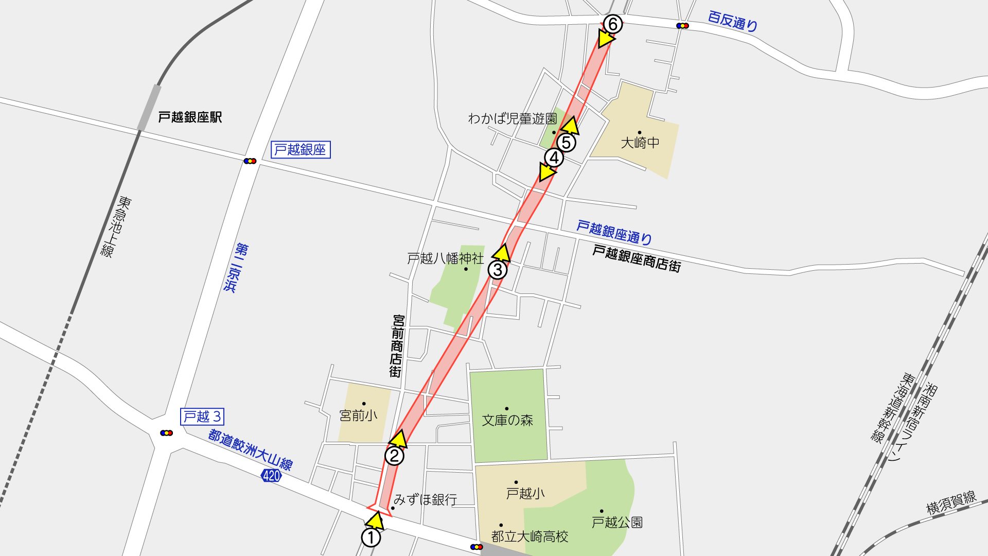 計画道路の幅員は20mです。交差する鮫洲大山線と同じくらいの広さです。