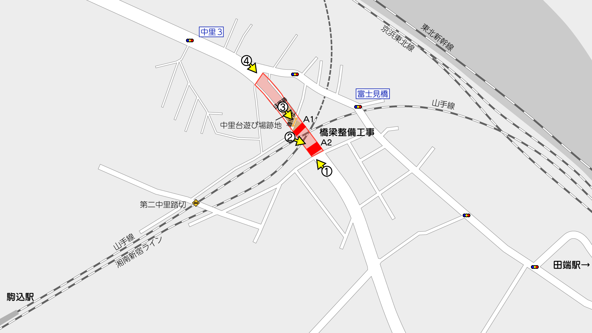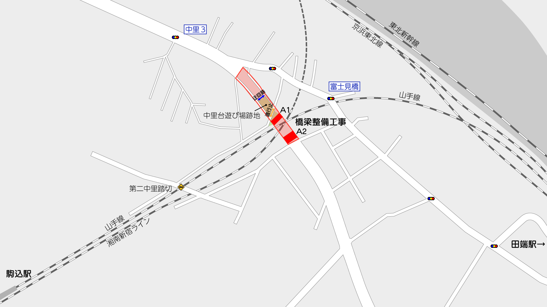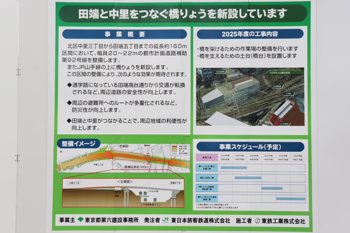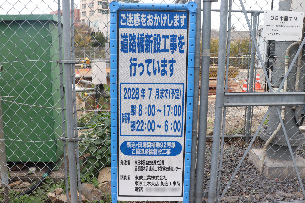 現在行われている工事は、「駒込・田端間補助92号線こ線道路端新設工事」で、2028年7月までの予定で、東鉄工業株式会社が施工しています。