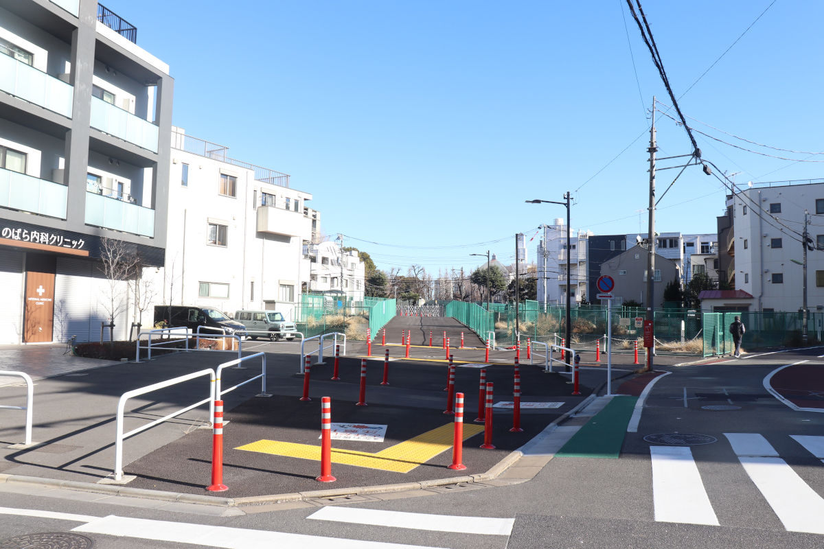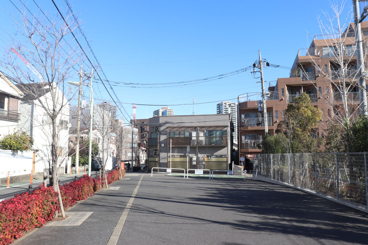 この部分では、2024年度に「緊急車両等通行路整備工事(6二-放2西五反田)」が発注され施工されました。有効幅員6mで整備され、緊急時には消防車両が通行することを想定しています。通常時は自転車歩行者用通路として開放されており、一般車両は通行できません。