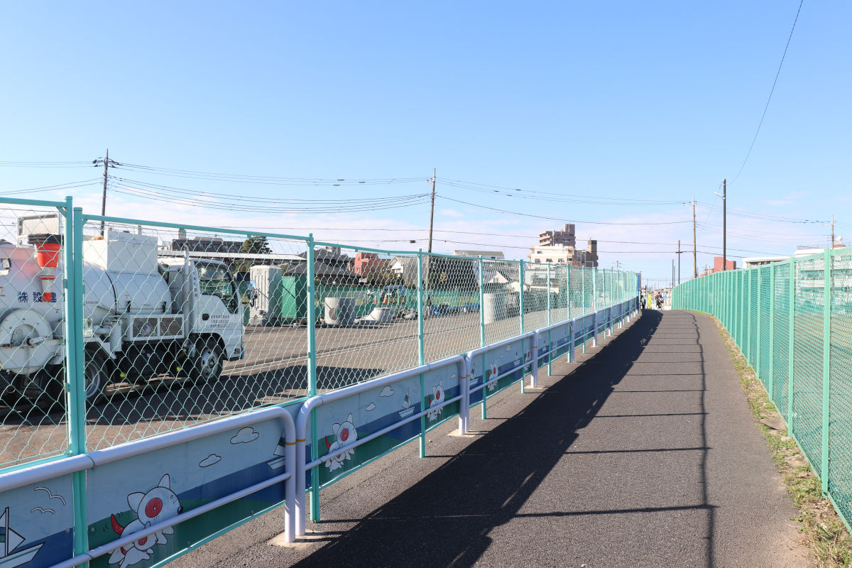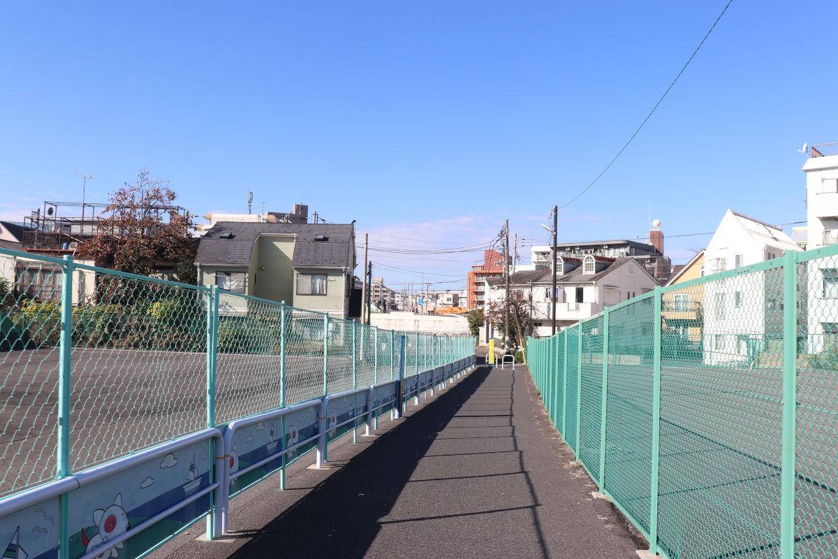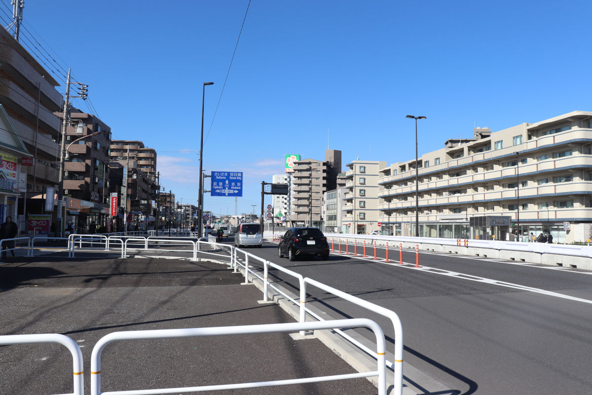 石神井川を跨ぐ橋梁部では、前回工事で橋面舗装と中央分離帯の設置工事が行われました。