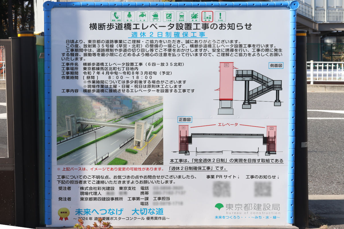このほか、北町西小学校付近で横断歩道橋のエレベータ設置工事が進められています。