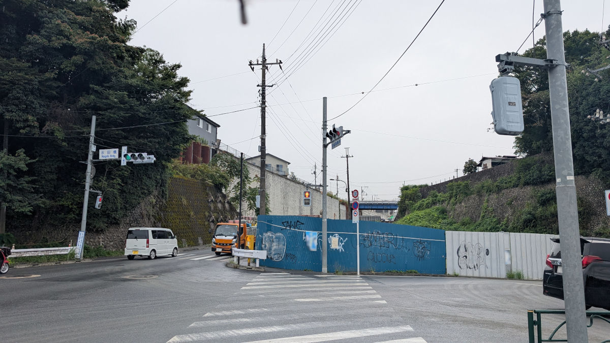 この先多摩川に向かって下り坂で、これまでは南側(写真右側)の擁壁工事などが実施されました。北側は一部を除きあまり変わっていません。
