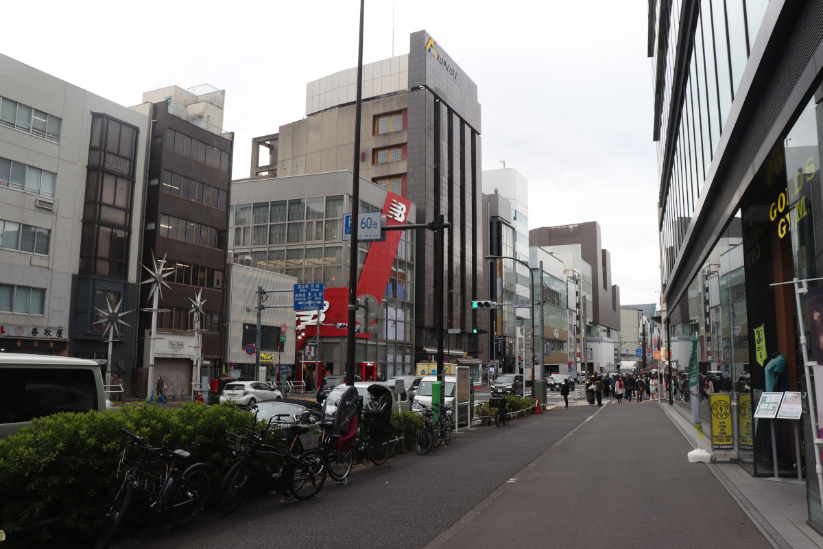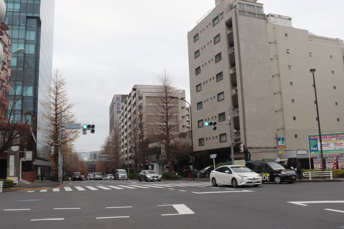 沿道は10階建て程度のビルが多く、中には20階程度のビルも立ち並んでいます。