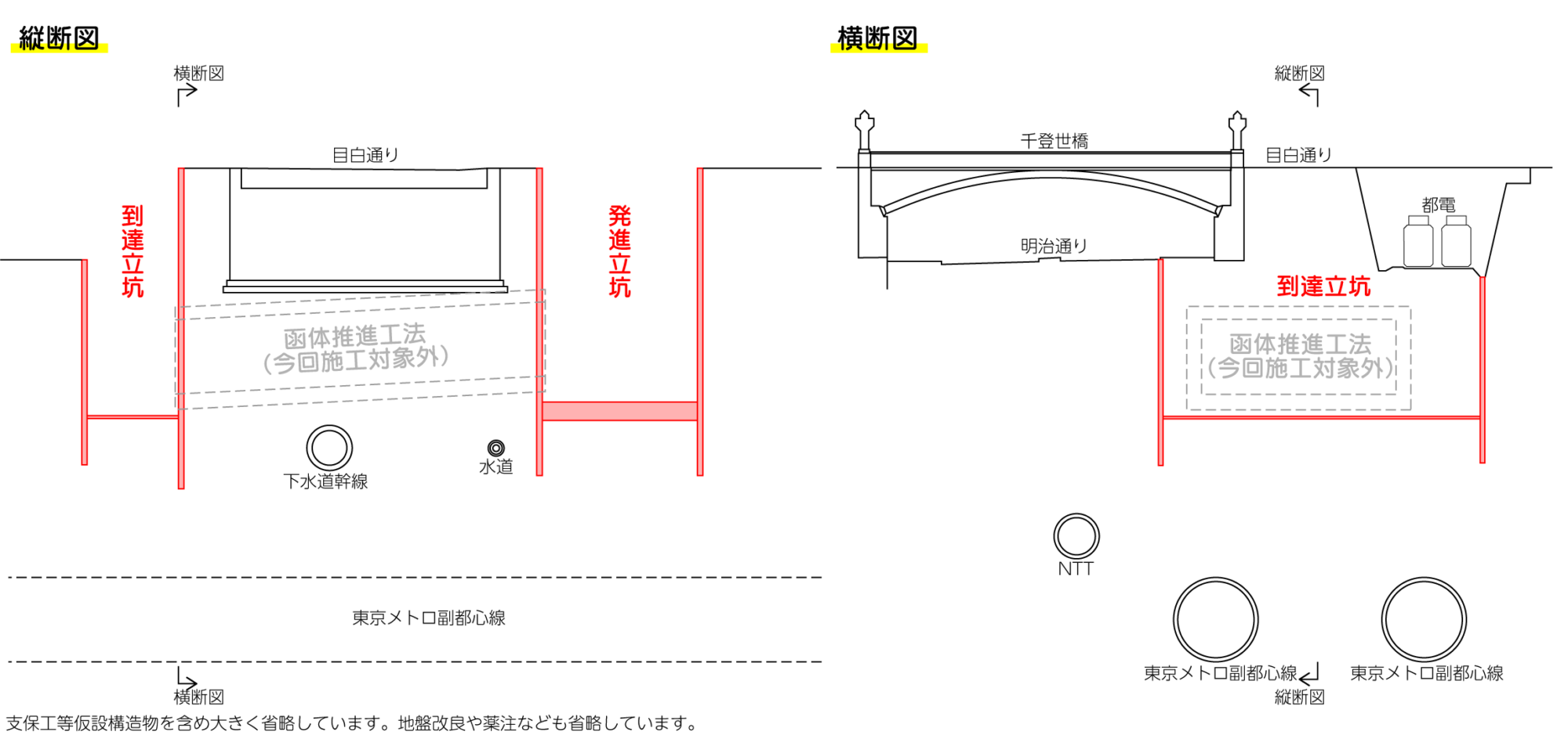 立坑は都電荒川線(東京さくらトラム)の軌道直下にも構築される計画で、東京都交通局の発注で軌道仮受工事も別途発注されています。