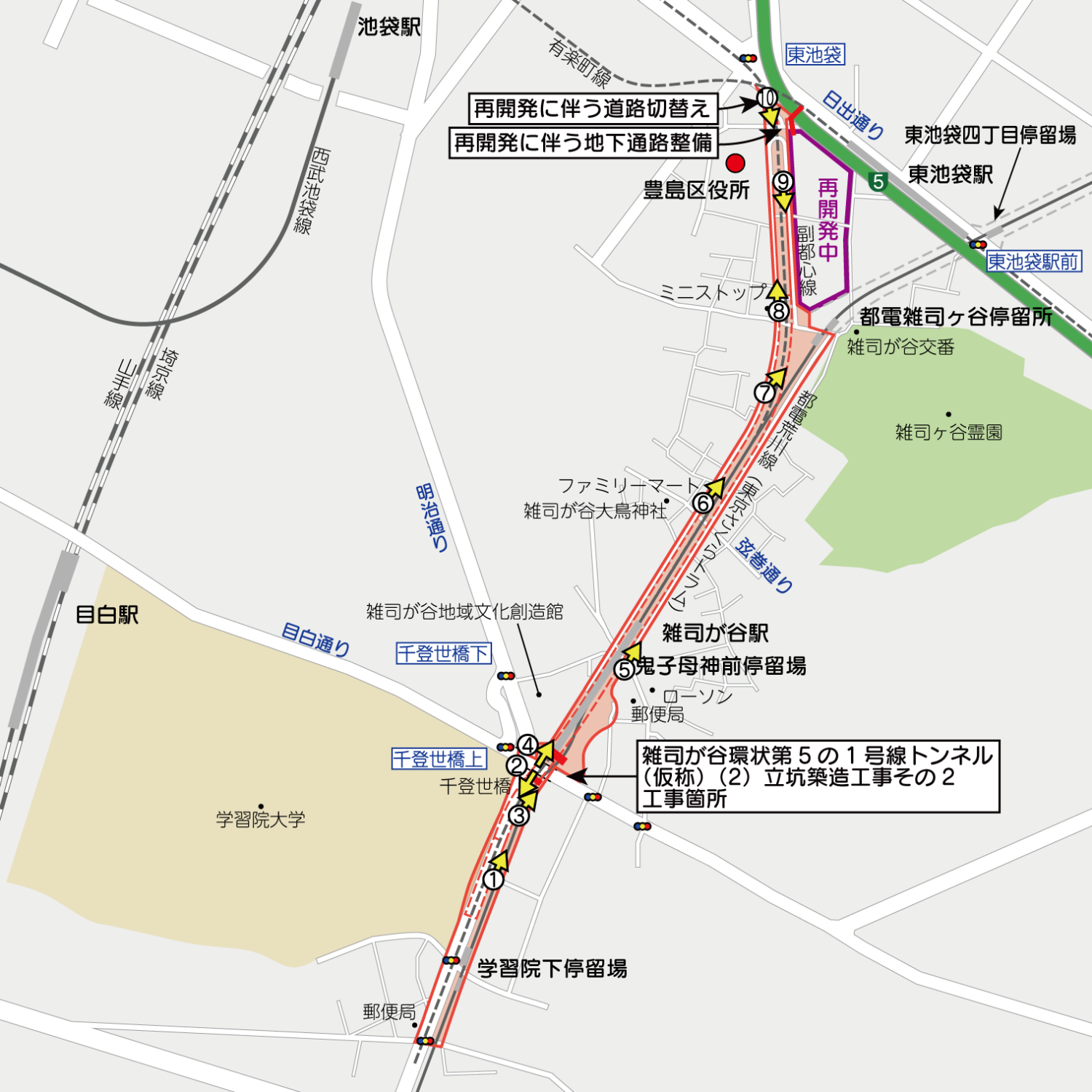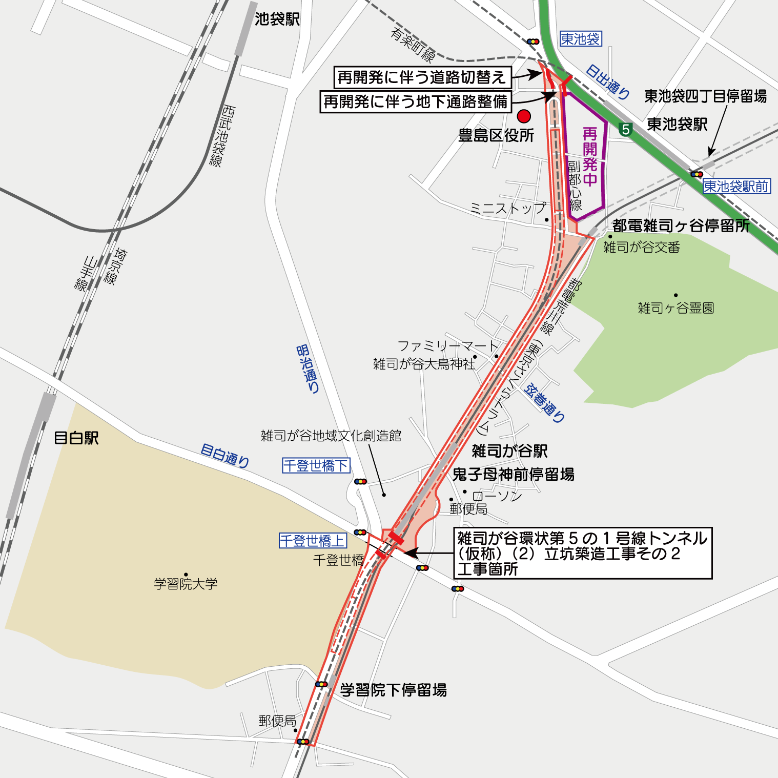 豊島区で事業が行われている環状第5の1号線(雑司ヶ谷)の進捗状況を見てきました。