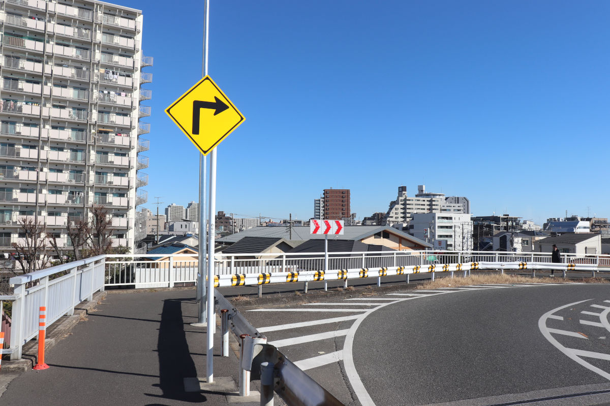 この道路はガス橋通りとして親しまれている道路で、その名の通り、東京都方面へ進むと多摩川を渡るガス橋にたどり着きます。