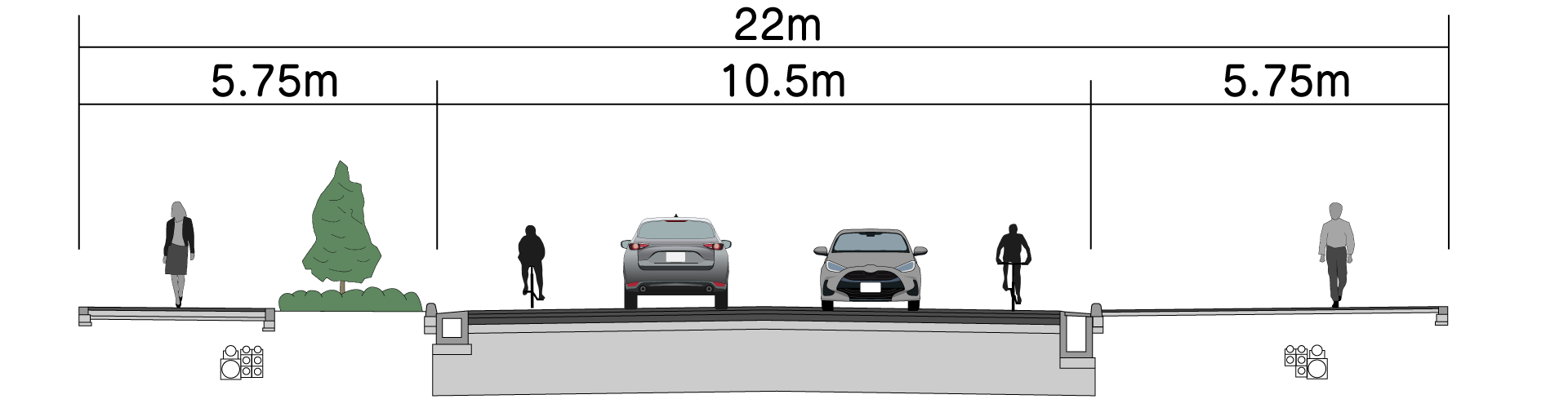 接続する五日市街道は、別途事業の歩道設置工事により、2024年3月頃に幅員15mに拡幅が完了しました。
