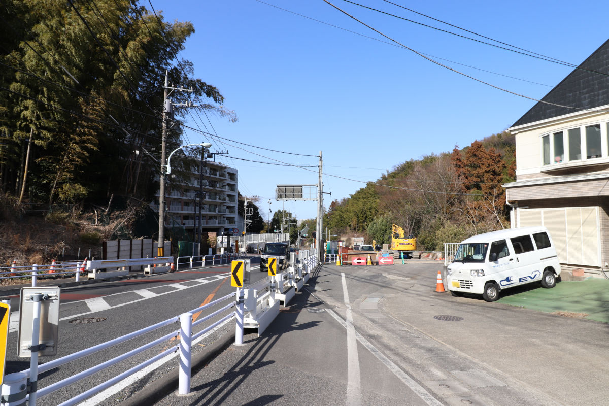 南山東部土地区画整理事業で整備中の多摩7・4・5号東長沼矢野口線接続部分は、切回し道路の撤去が完了し、東長沼矢野口線が接続されています。読売ランド線側は、歩道などの本格的な整備は間に合ってはいないものの、右折レーンの設置(開通まで封鎖中)が行われたほか、警察発注の信号機の設置工事などが既に行われています。