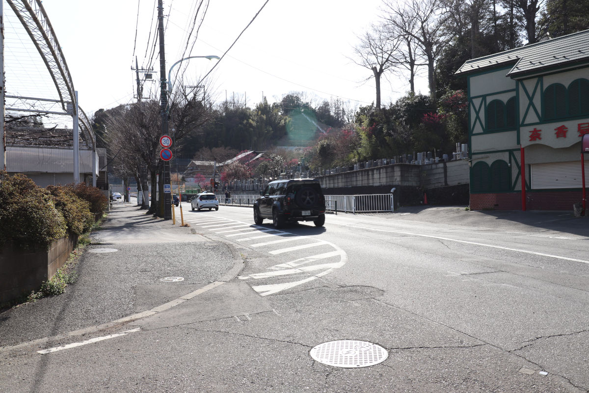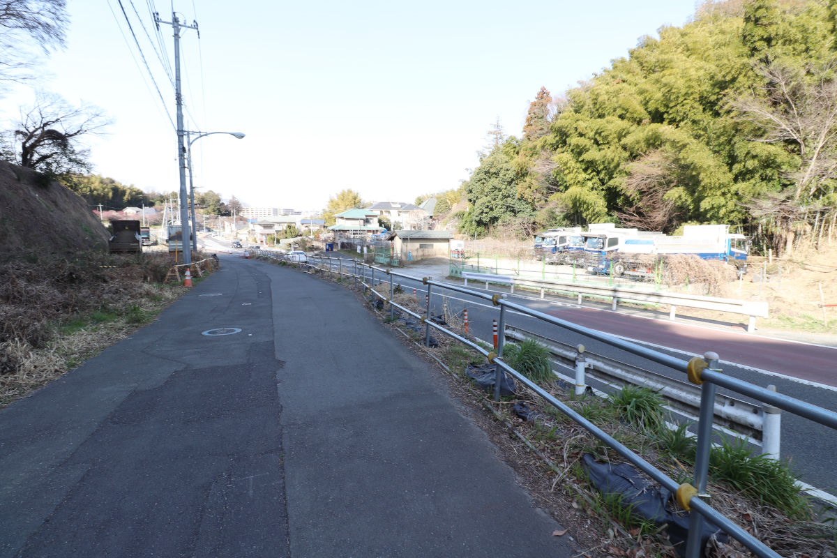 東京都が施行し、稲城市が事業を受託している区間の南側の、稲城よみうりランド坂トンネルの出入口付近です。