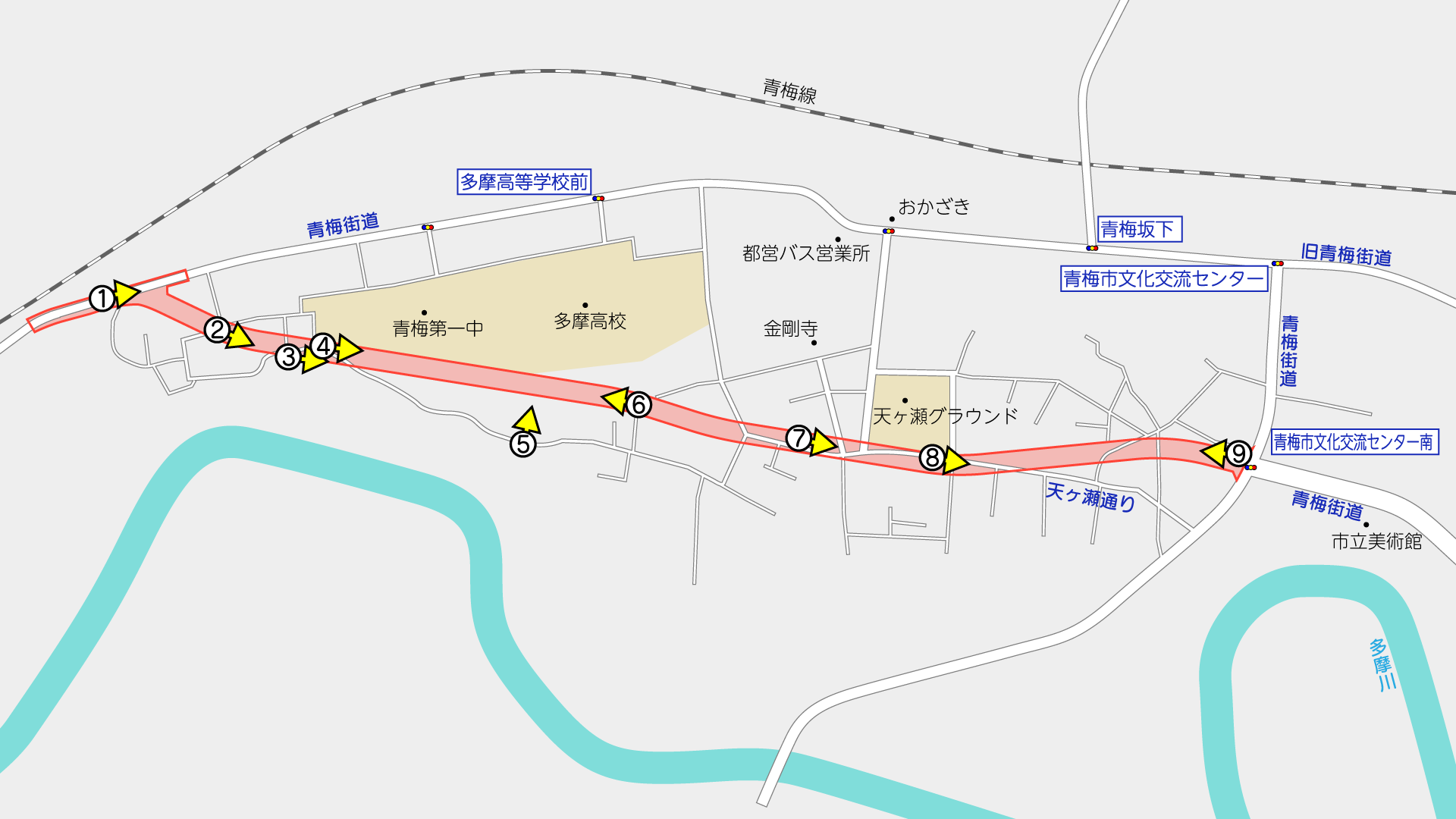 ⑨青梅市文化交流センター南交差点から見た様子(地図