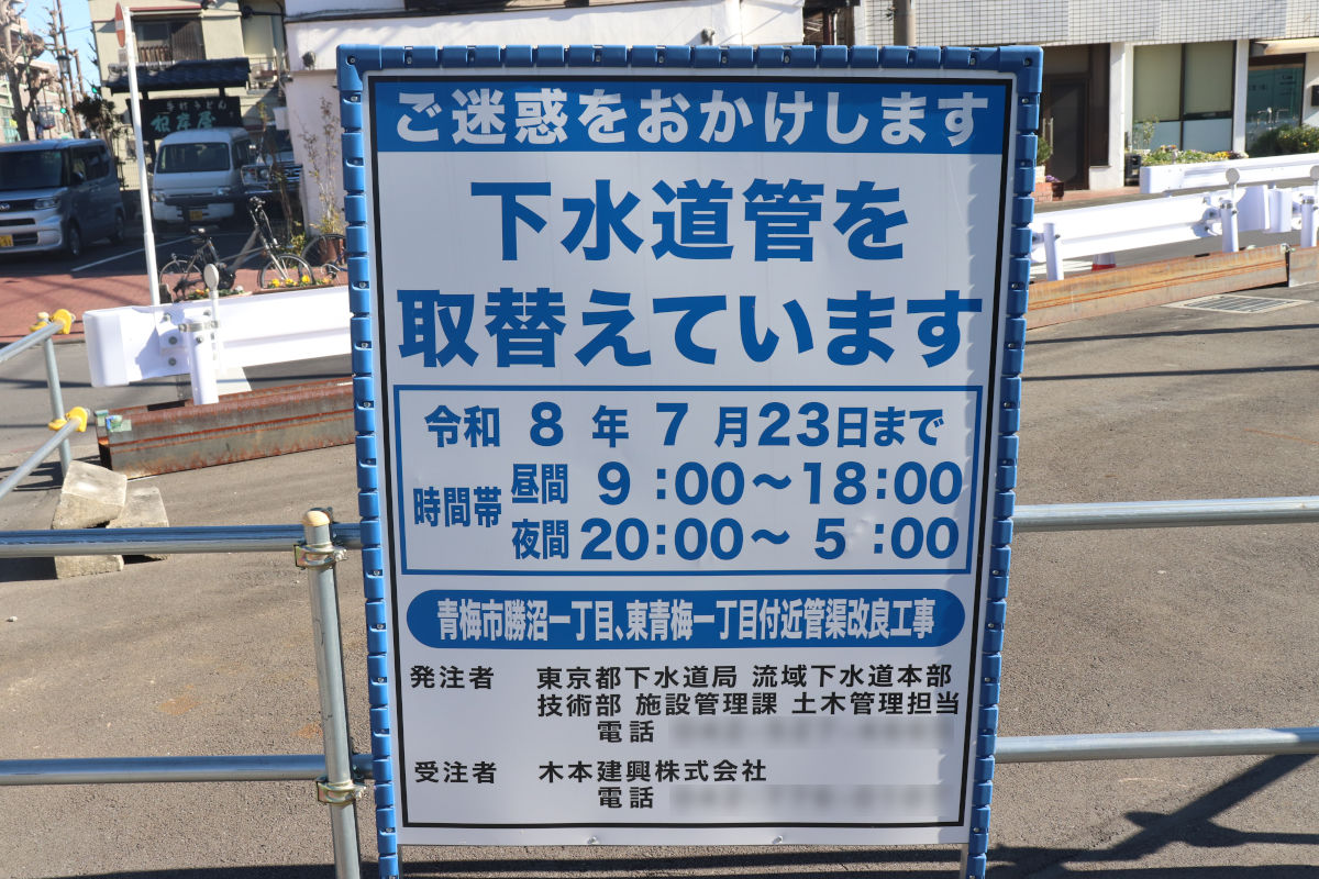 | 工事件名 | 青梅市勝沼一丁目、東青梅一丁目付近管渠改良工事 |