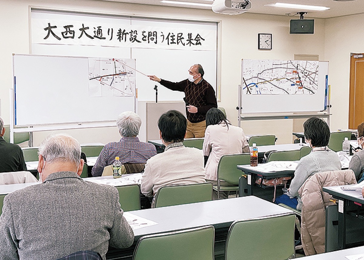この都市計画道路は2023年になって都市計画決定された新しいもので、かつ既成市街地を貫く計画であることから、反発もある路線のようです。