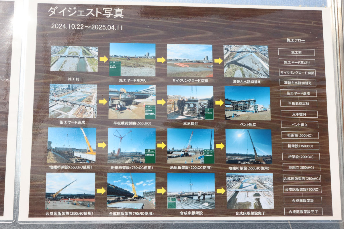 今年は11年目にあたります。昨年度に引き続き、下流側橋(新橋)の上部工事が、2025年11月頃から始まっています。