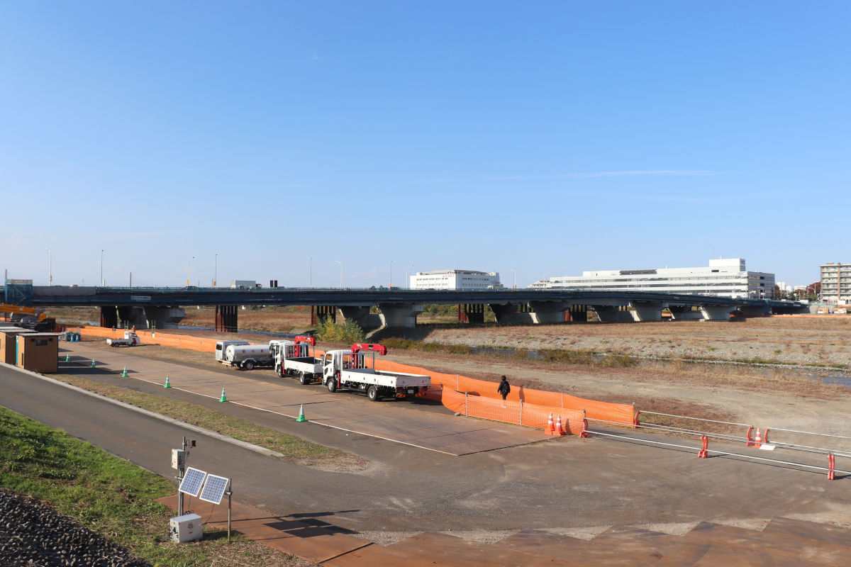 11月15日時点で、既に左右両岸で工事ヤードを設置し、作業を再開させていました。