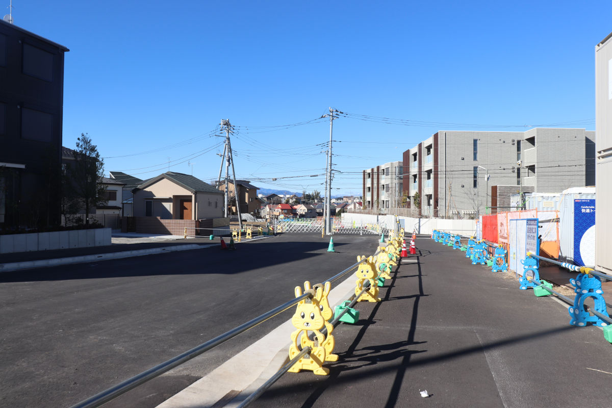 電線共同溝などの躯体も見え、今後一気に道路らしく整備が進むと見られます。