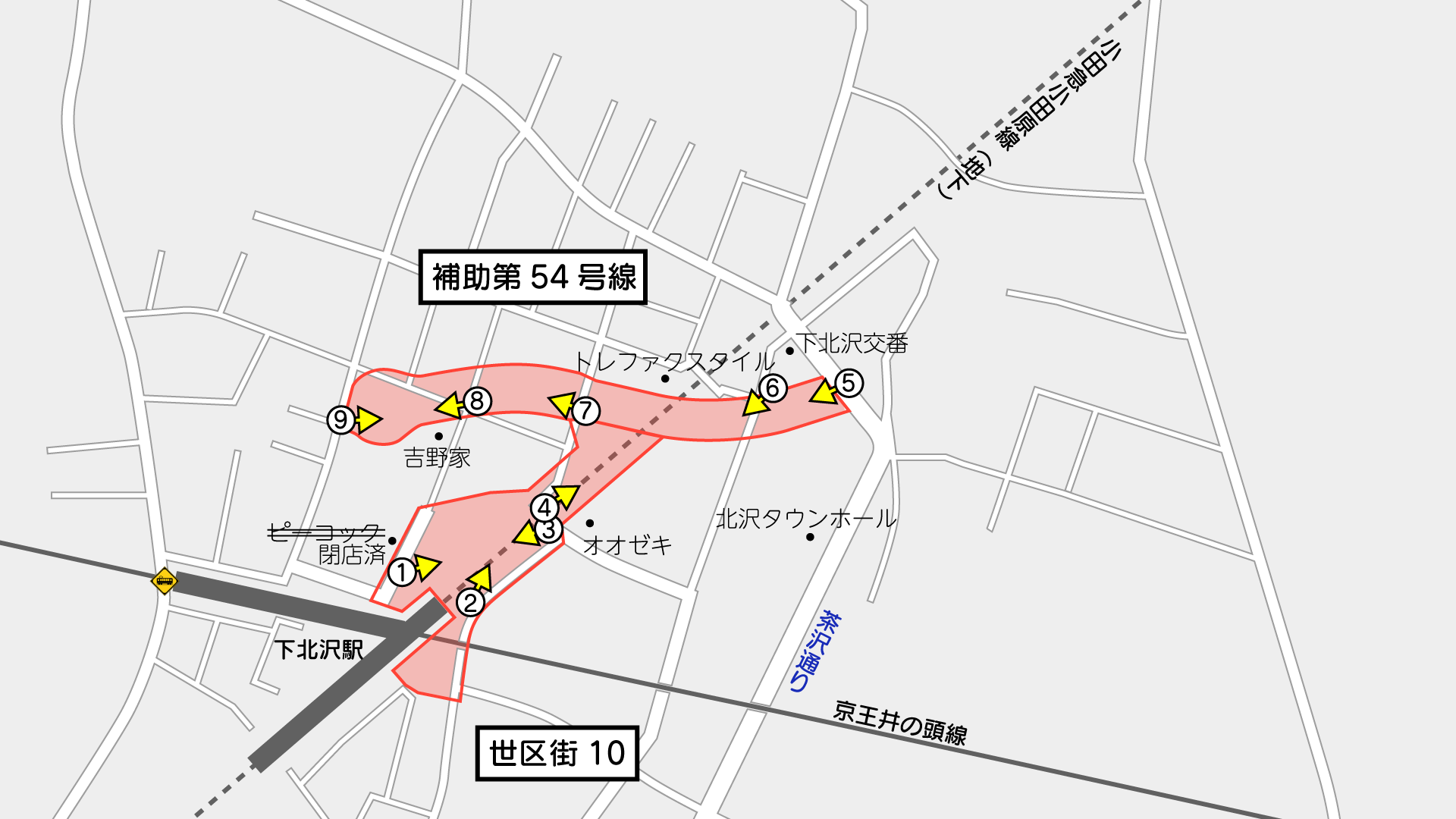 | 補助第54号線(下北沢1期) | 世田谷区画街路第10号線 | |