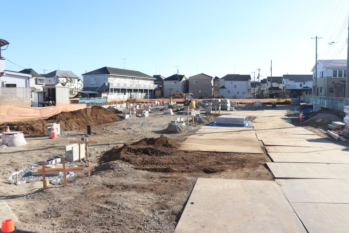 現地を見る限り、現時点で直接買収したような土地はなかったように見えます。武蔵村山市のウェブサイトによると、沿道整備街路事業の代替地整備後、代替地への移転を行うのに合わせ、直接買収地の取得を進め、都市計画道路用地の更地化を行うようです。
