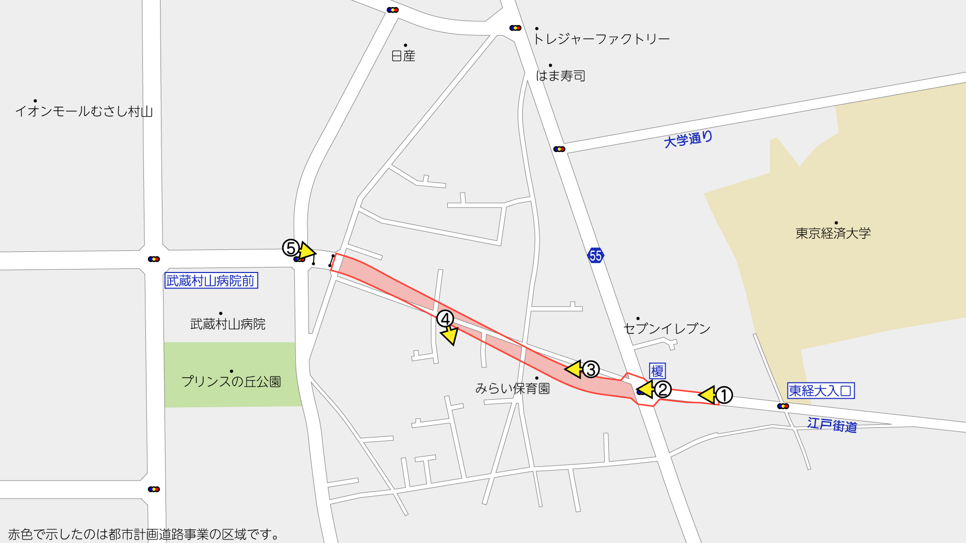 ①都市計画道路事業の事業区域東側(地図