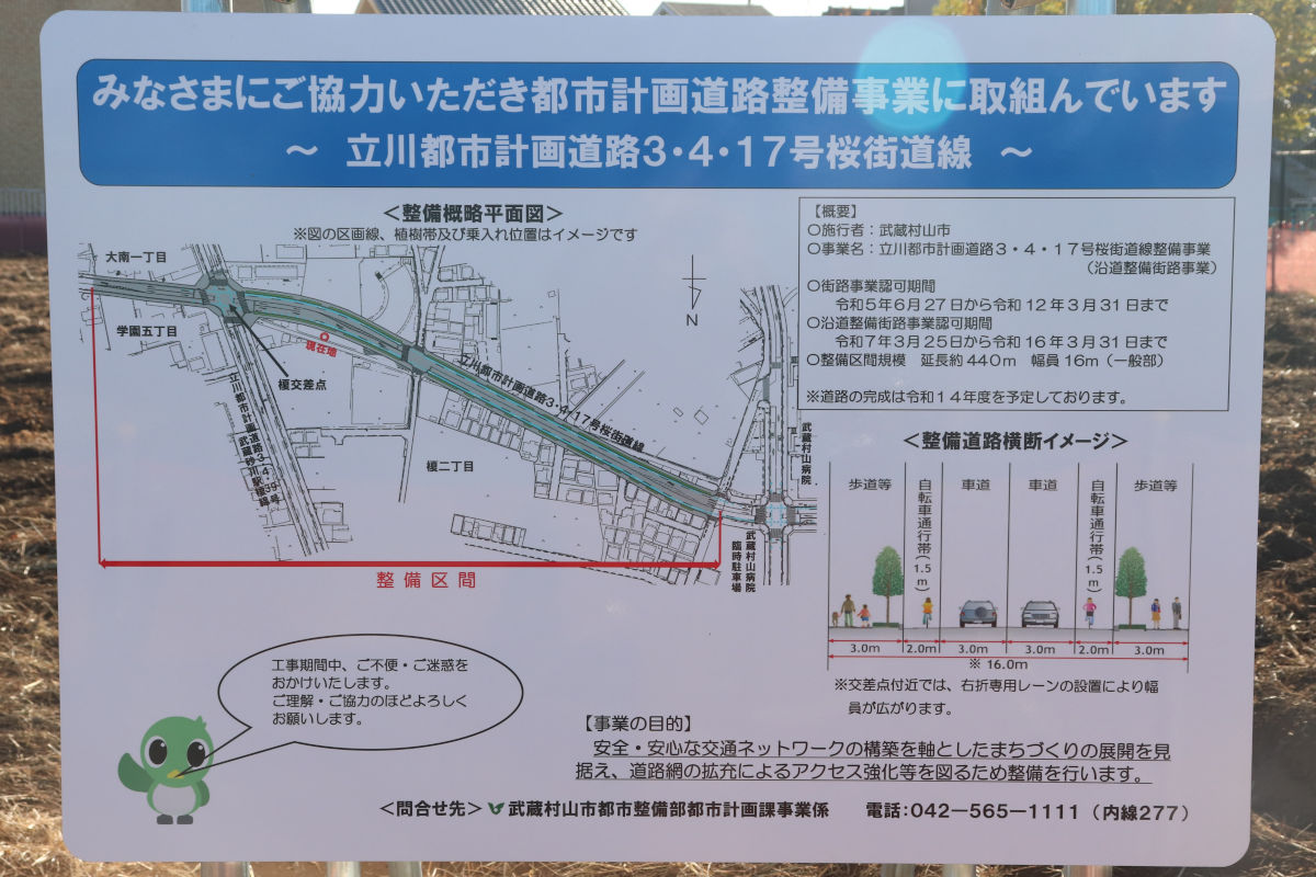 武蔵村山市で事業が行われている立川3・4・17号桜街道線の進捗状況を見て来ました。