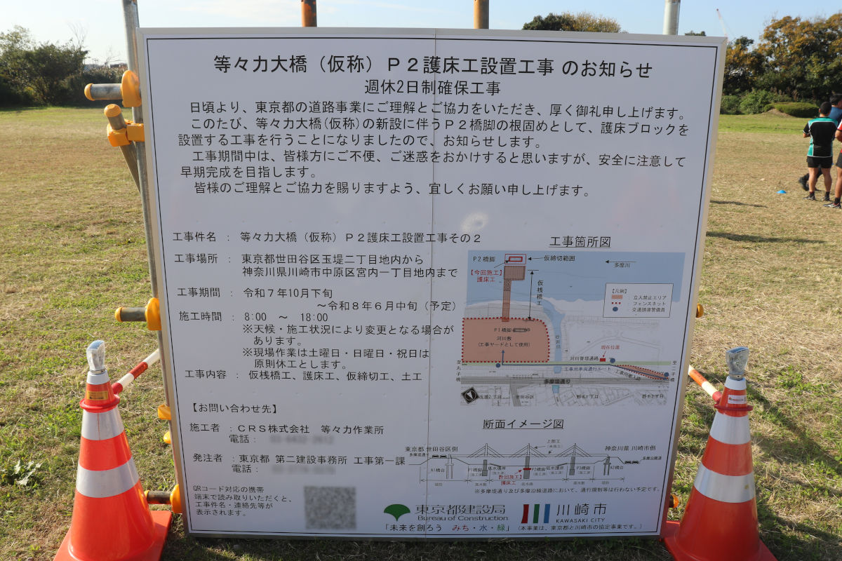 今回の等々力大橋(仮称)の工事は東京都側から施工されるため、川崎市側は大きな変化はありません。