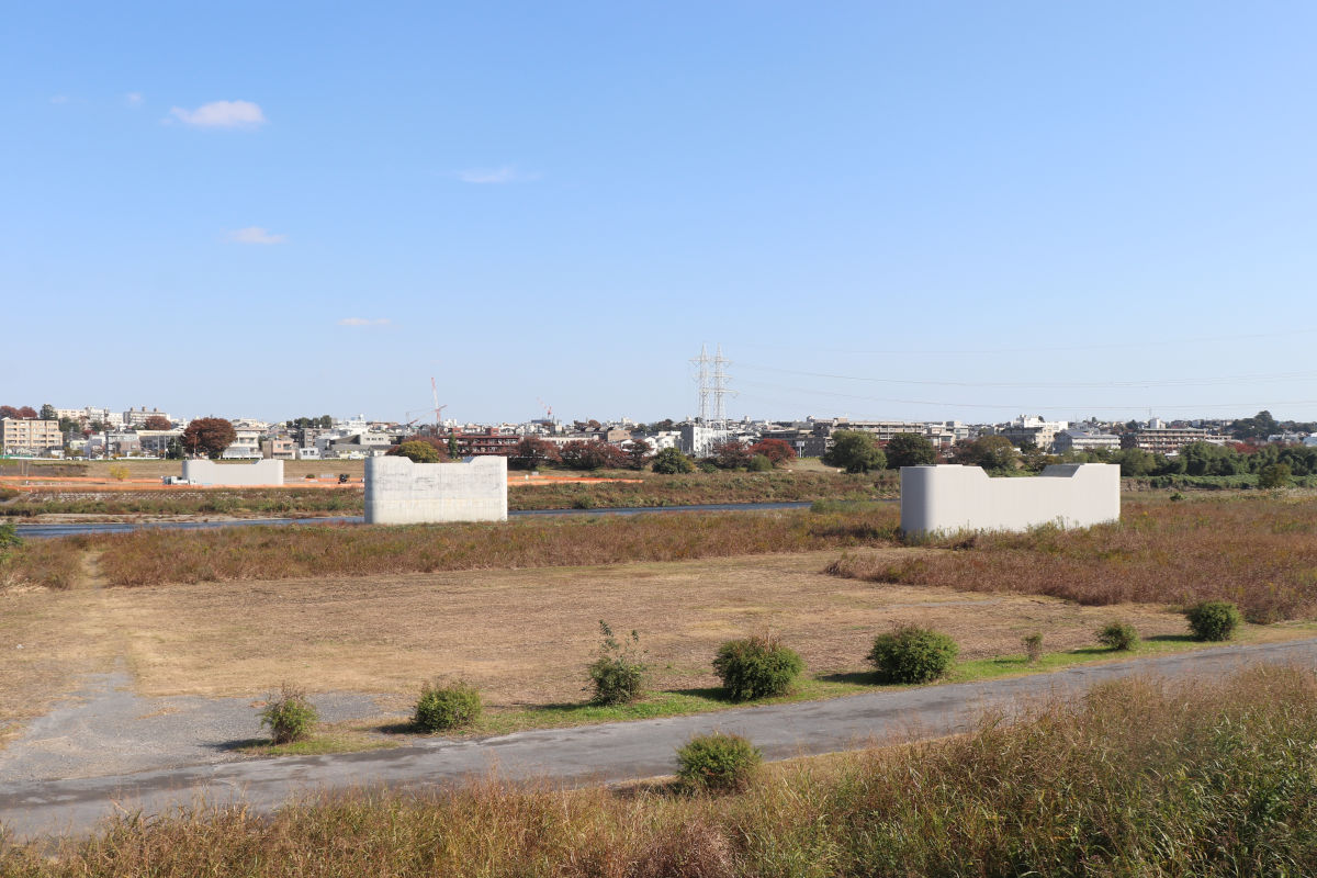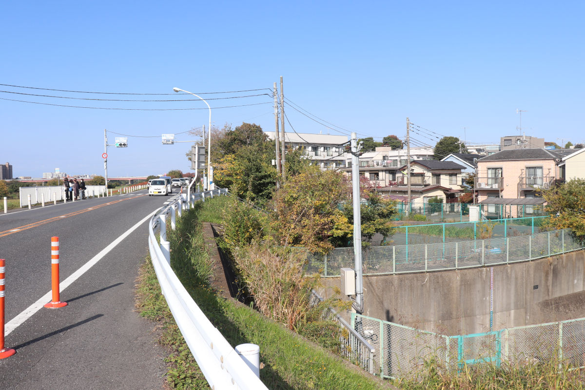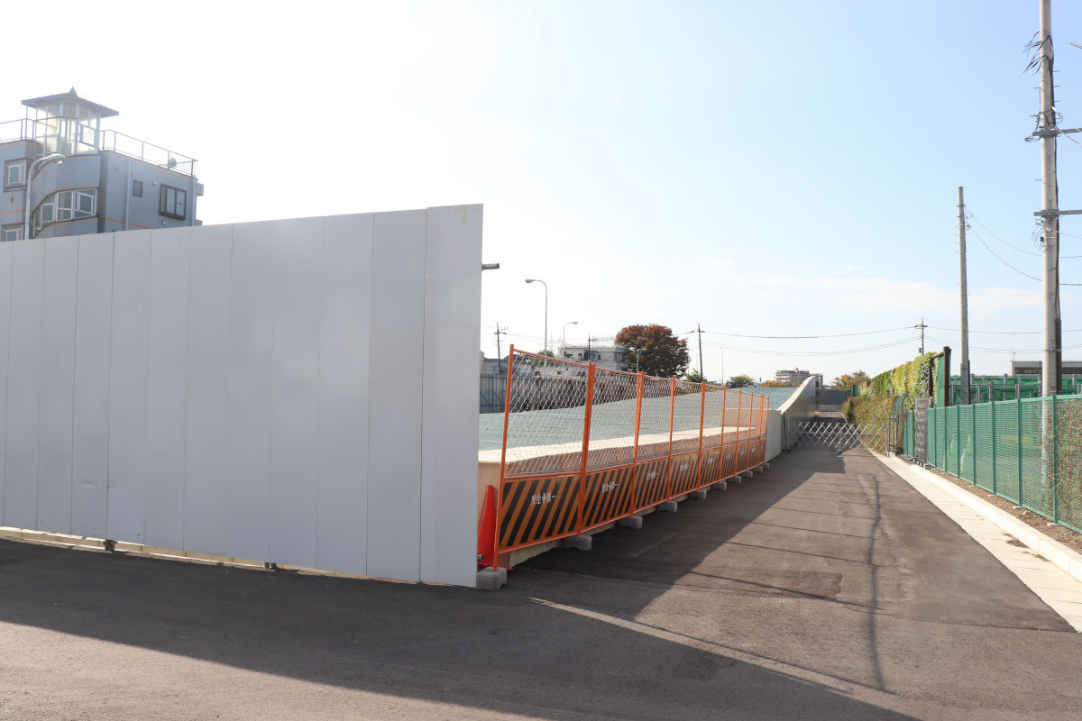この路線の東京都側では、昨年度初めて工事が発注され、橋に至るアプローチ部の将来上り線側の擁壁の一部が設置されました。