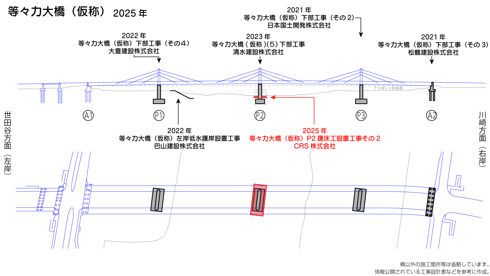 | 2024年度 | 等々力大橋(仮称)p2護床工設置工事その2 | CRS株式会社 | |