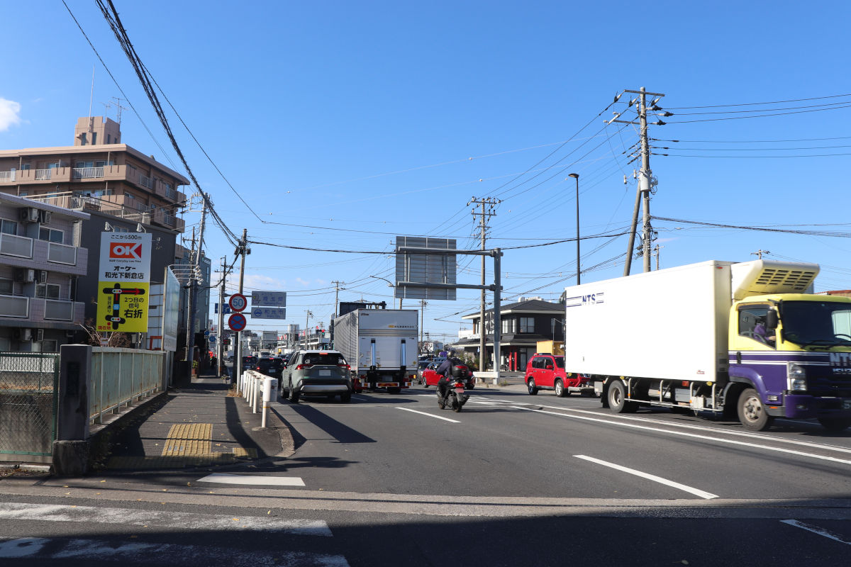 和光バイパスの整備に合わせ、右折レーンを設置するため、部分的に拡幅を行う計画で、この付近の幅員を20~36mに拡幅する都市計画変更が、2020年3月6日に行われています。概ね北側に拡幅する計画のようです。